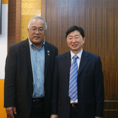 董事长和密克罗尼西亚外交部长 洛林?罗伯特合影