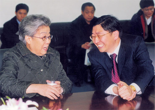 国务院副总理吴仪视察浪莎,与公司董事局主席亲切交谈