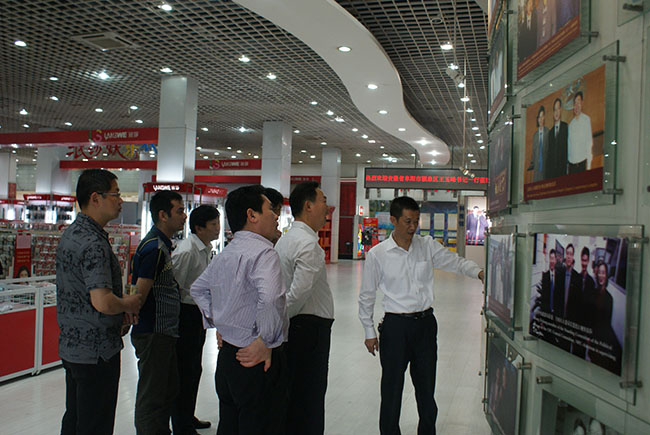 安徽省阜阳市颍泉区书记王玉峰一行来浪莎参观考察,公司总裁翁荣弟亲自接待。