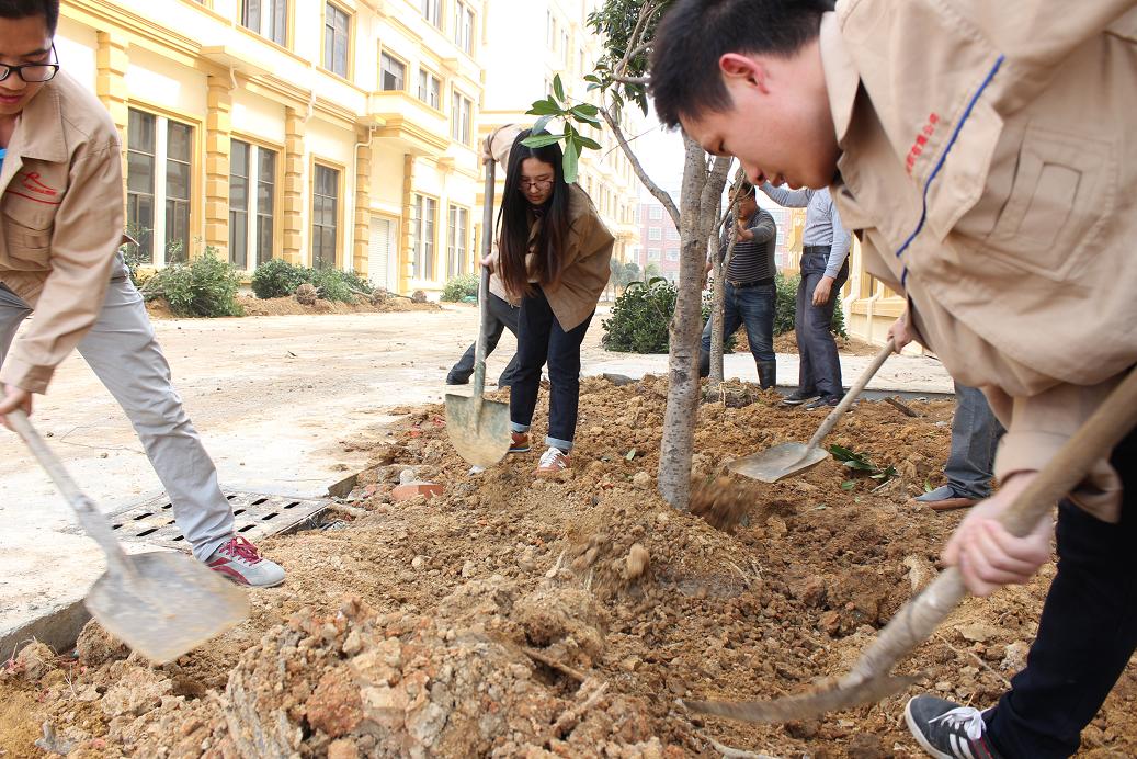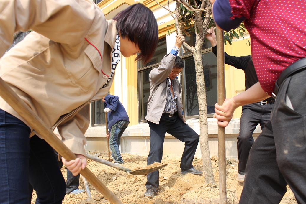 今天是312植树节,中午过后,浪莎集团党总支书记兼集团总经理翁关荣带领全体党员,参加义务植树活动,将党建工作落到实处,全力配合义乌国家卫生城市的复评工作。植树过程中书记翁关荣最为卖力,已经完全不顾脚上穿高档皮鞋,他用夹杂着浓重的义乌方言的普通话说:“种树好嘞,绿化多了环境也会好起来,大家在好环境下才会安居乐业,促进社会和谐。”党代表陈筱斐说:“前人种树后人乘凉,种下好种子,就会结出好的果实,这是一种善举,人人参与,终究会得到福报。”