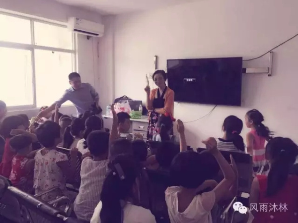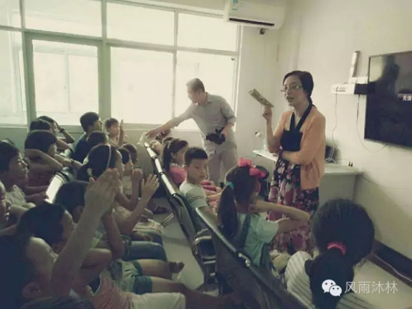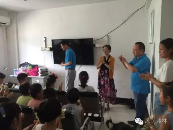 当翁总裁和陈书记来到暑期活动室,小朋友们正在兴致勃勃地看动画片。党员干部的到来引起了小朋友们的注意,看到翁总裁和陈书记一行的到来,小朋友们很是开心。