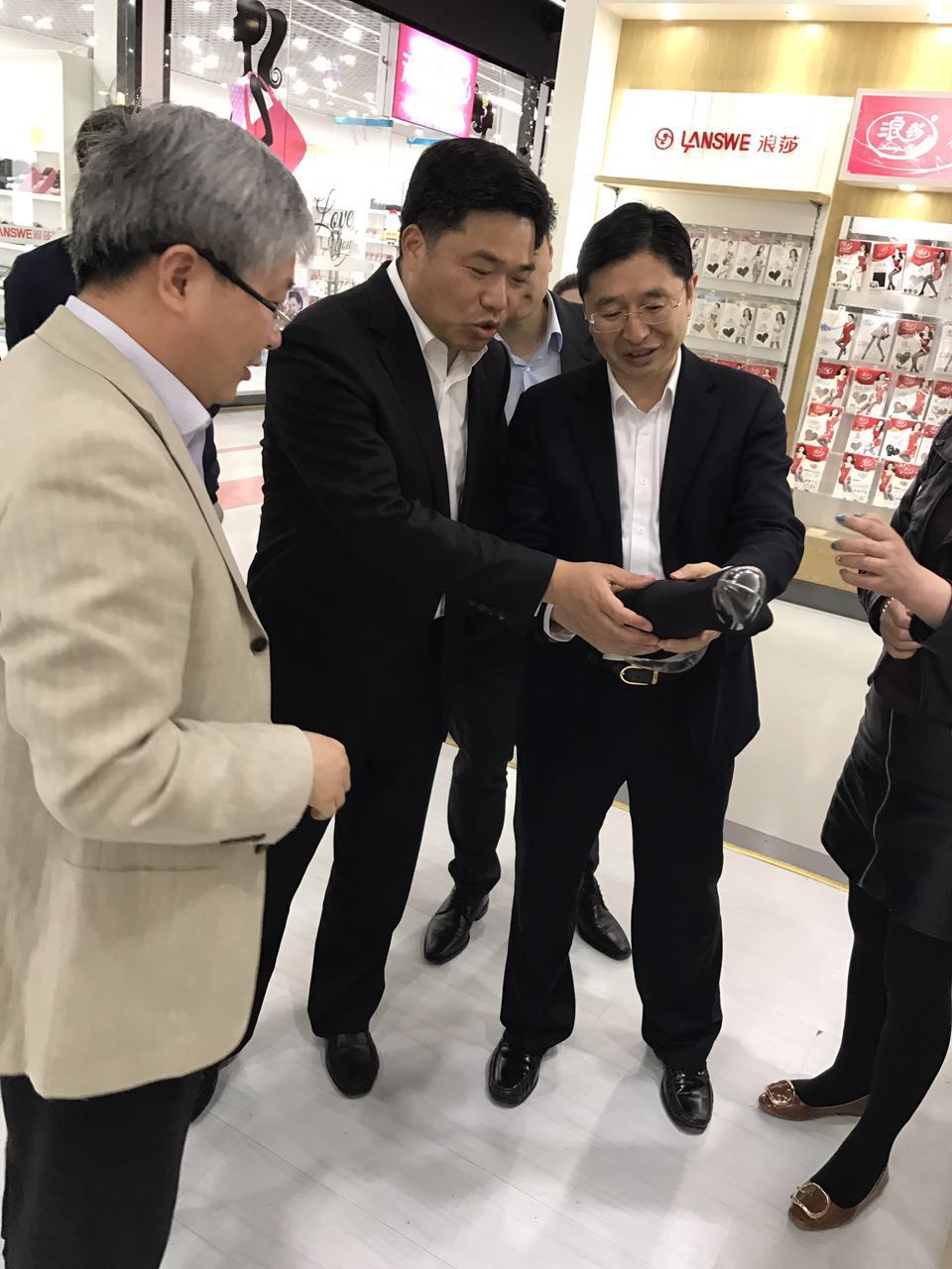 周柳军司长参观了公司展厅,领略了袜业航母的风采后赞叹不已,在肯定了成就的同时,周司长还提出了一些想法和建议,浪莎董事长深受启迪,并马上着手落实。