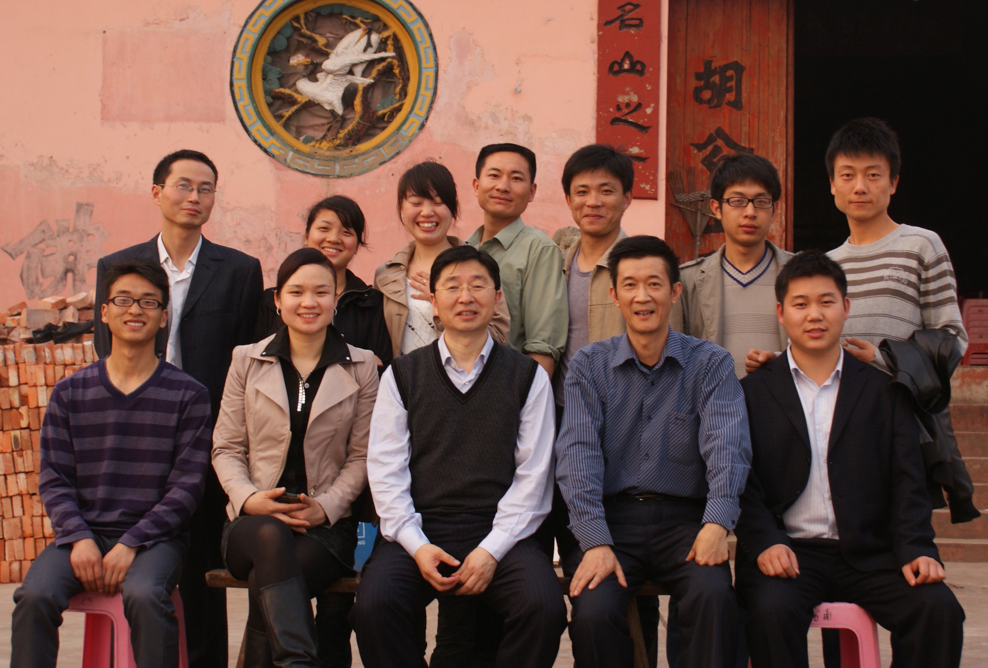 董事长与大家在山脚下农家屋前合影