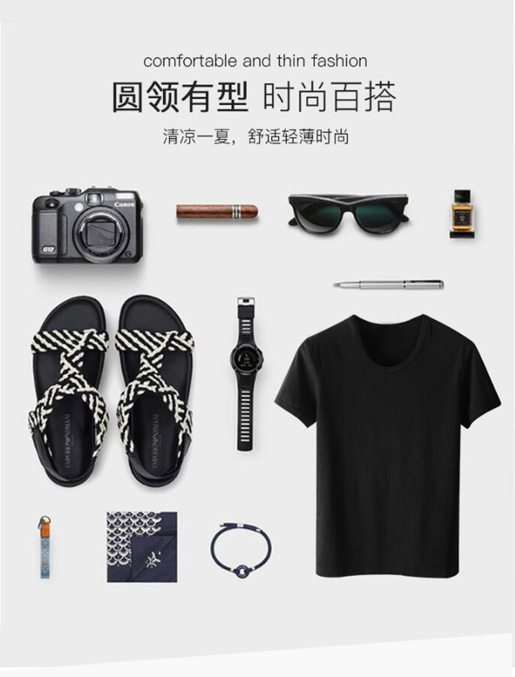 【100%纯棉】2021春季爆款t恤男士韩版简约纯色短袖圆领T恤男