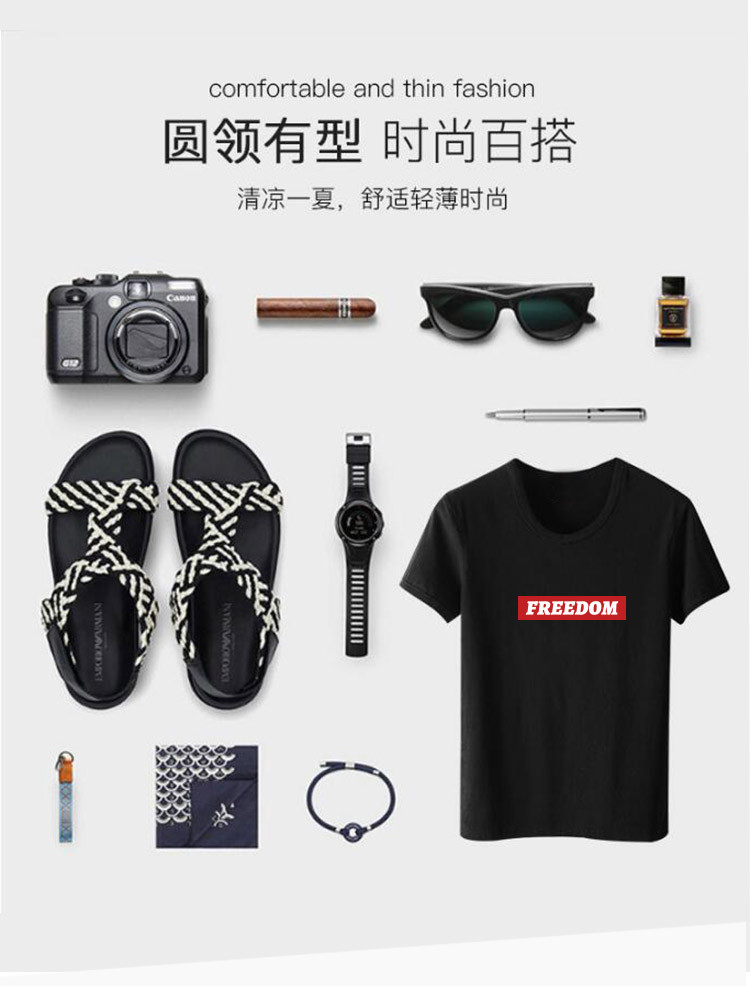 【100%纯棉】2021春季爆款t恤男士韩版潮流字母印花短袖圆领T恤男