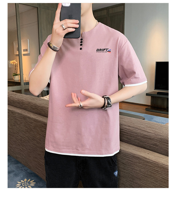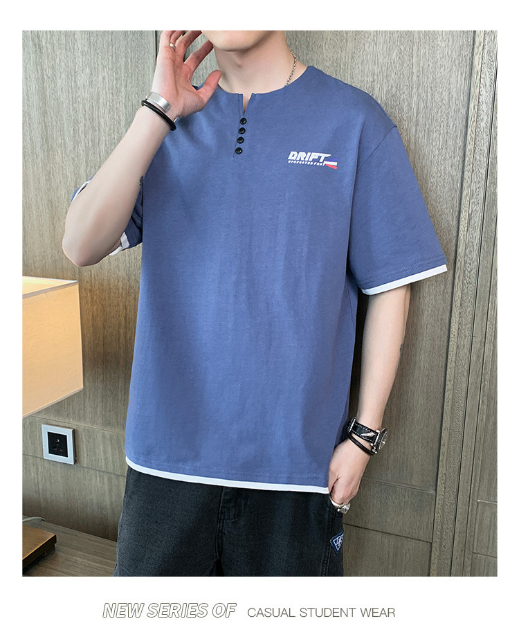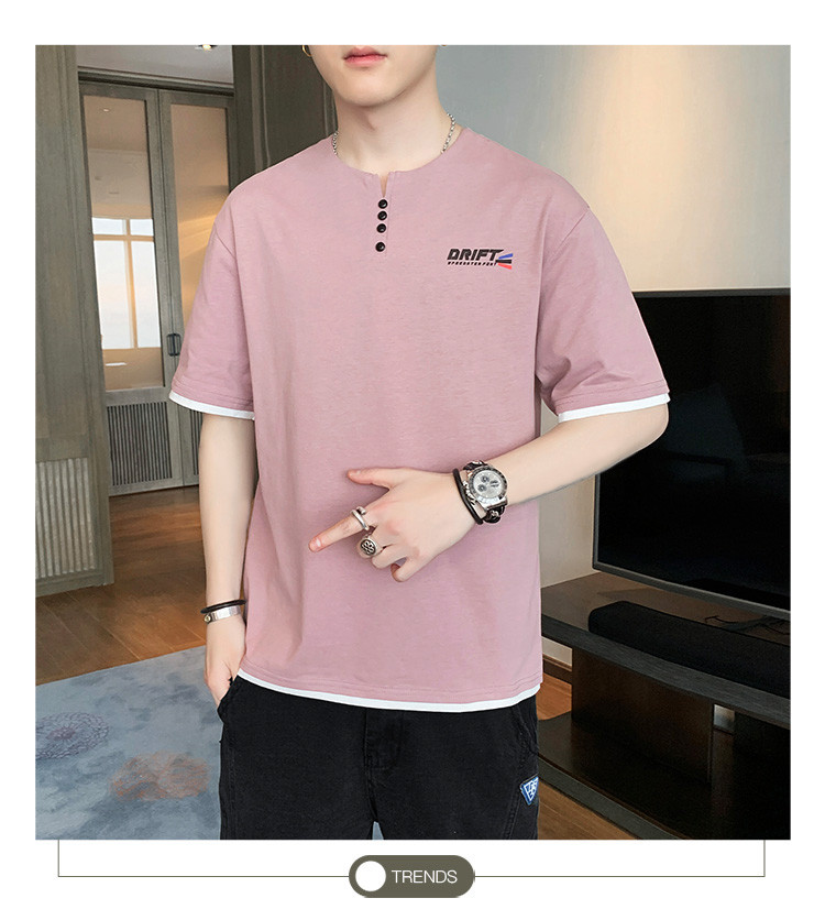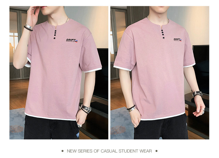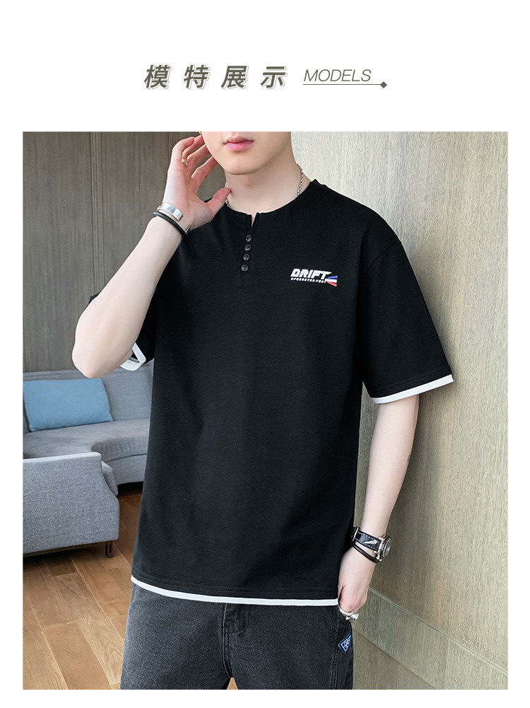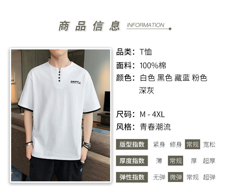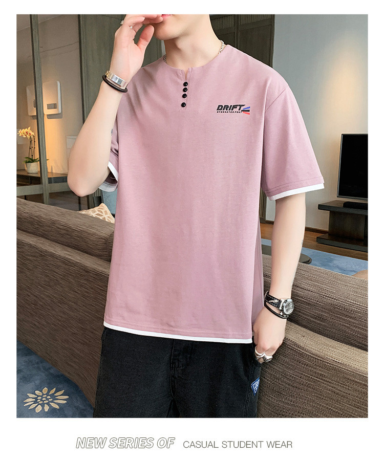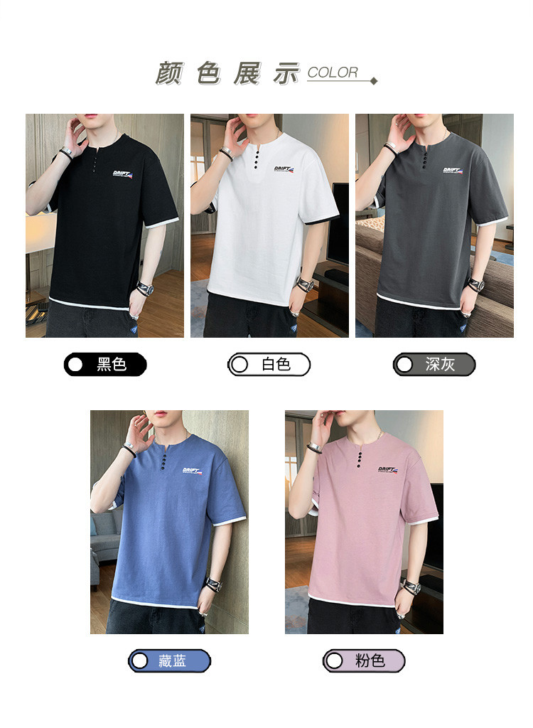 短袖T恤男夏季新款纯色宽松百搭假两件纯棉透气打底衫