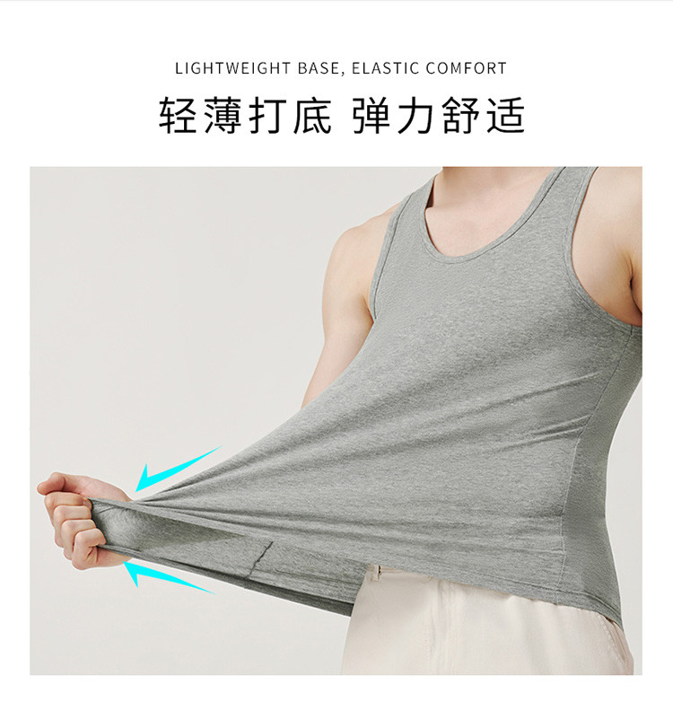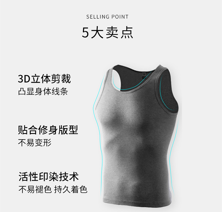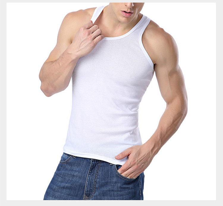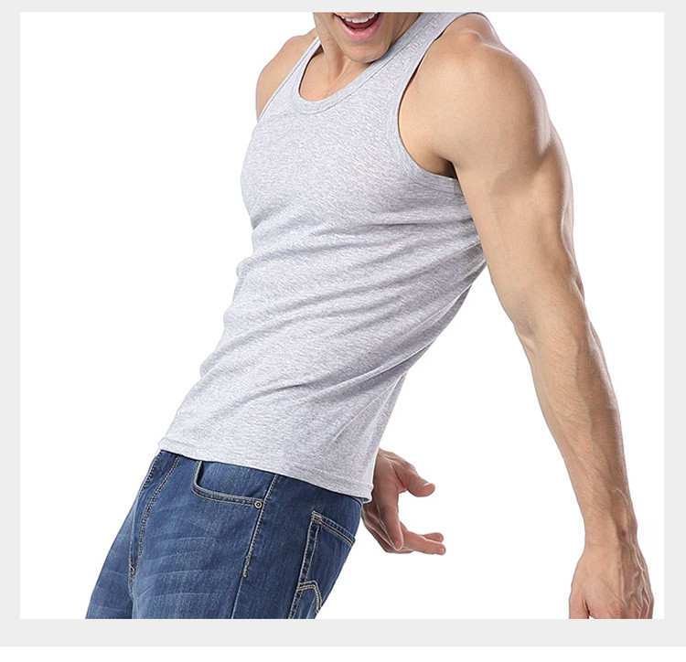 男士纯色吸汗运动纯棉罗纹圆领背心