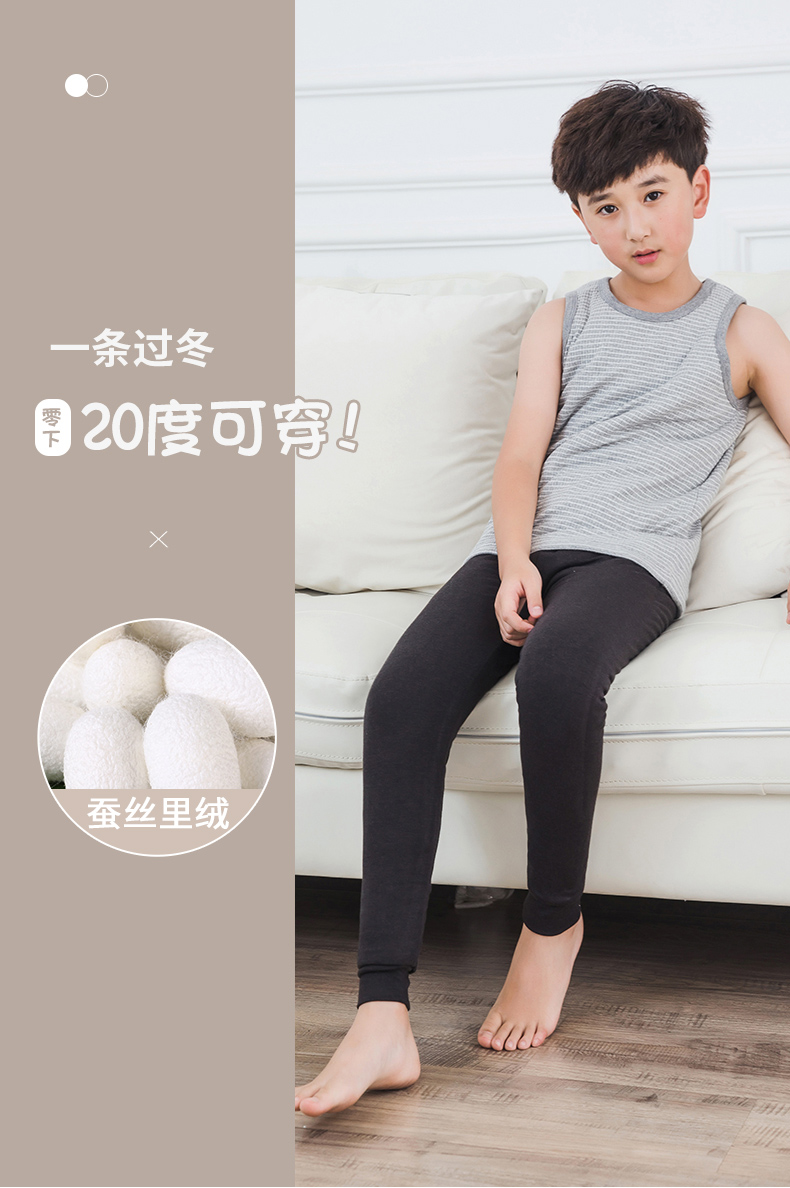 浪莎童装男童蚕丝打底裤秋冬季中大童保暖棉裤儿童加厚加绒内穿裤