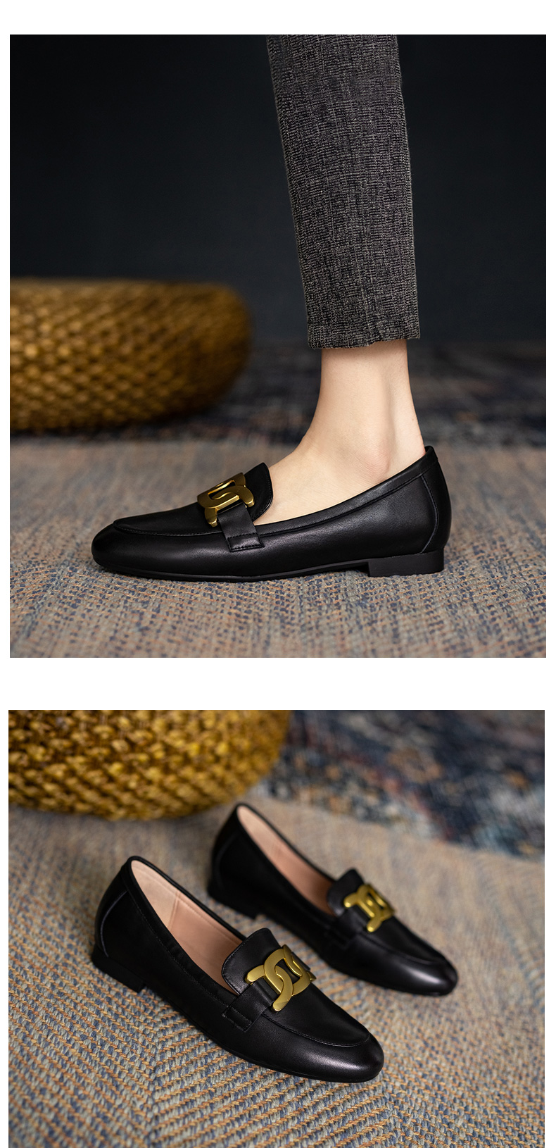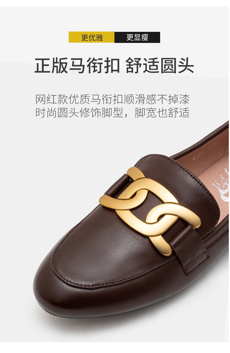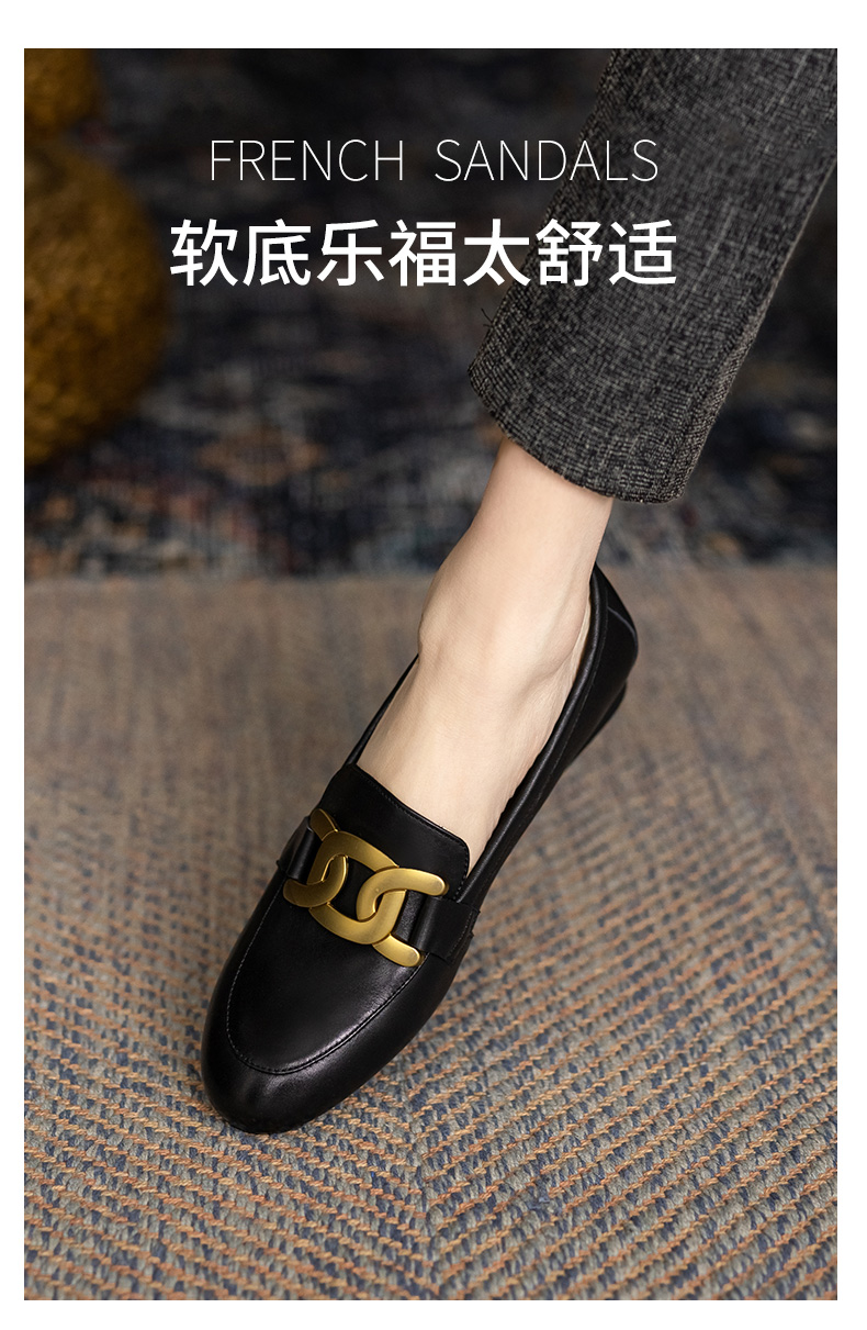 乐福鞋女真皮2021爆款鞋子春英伦风圆头单鞋一脚蹬黑色平底小皮鞋