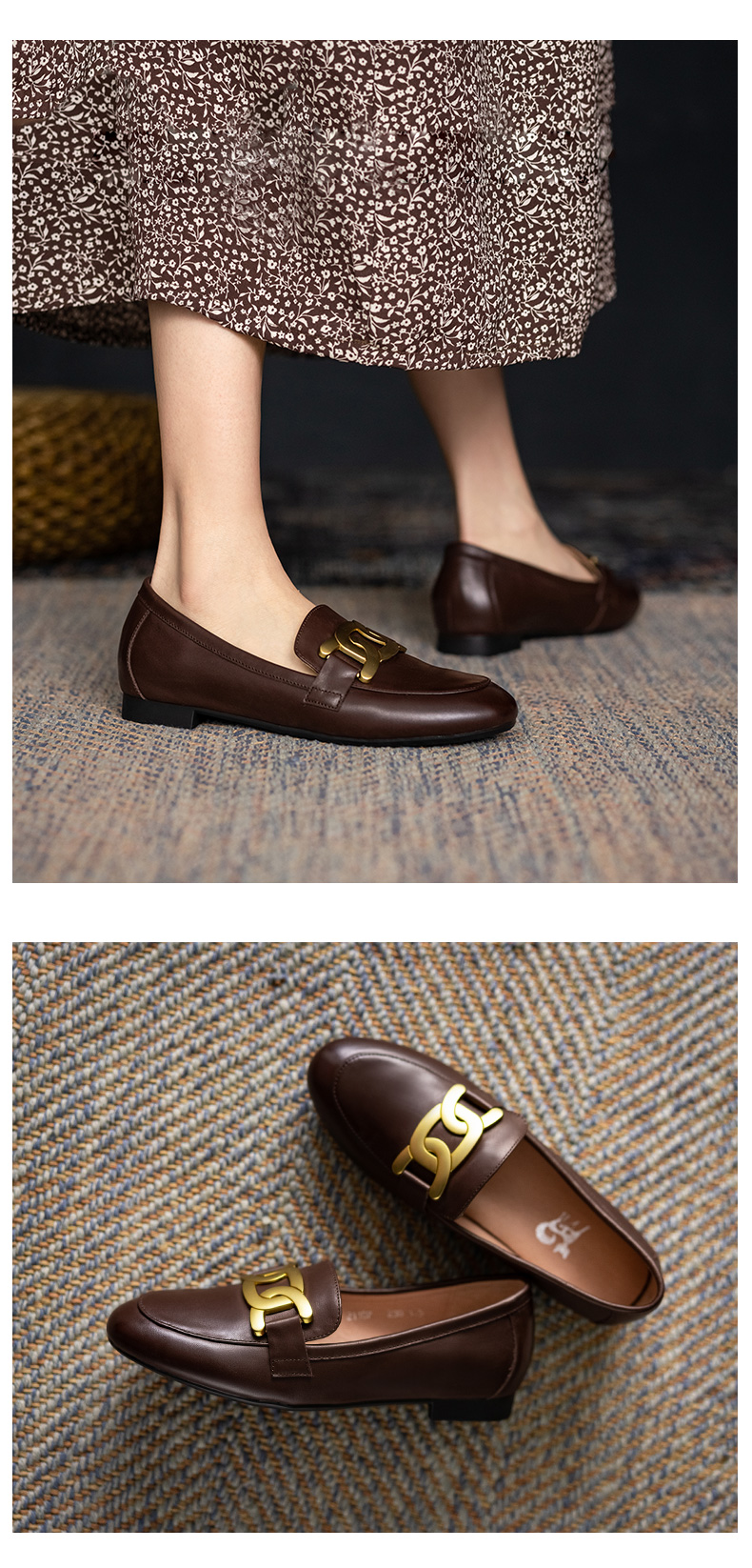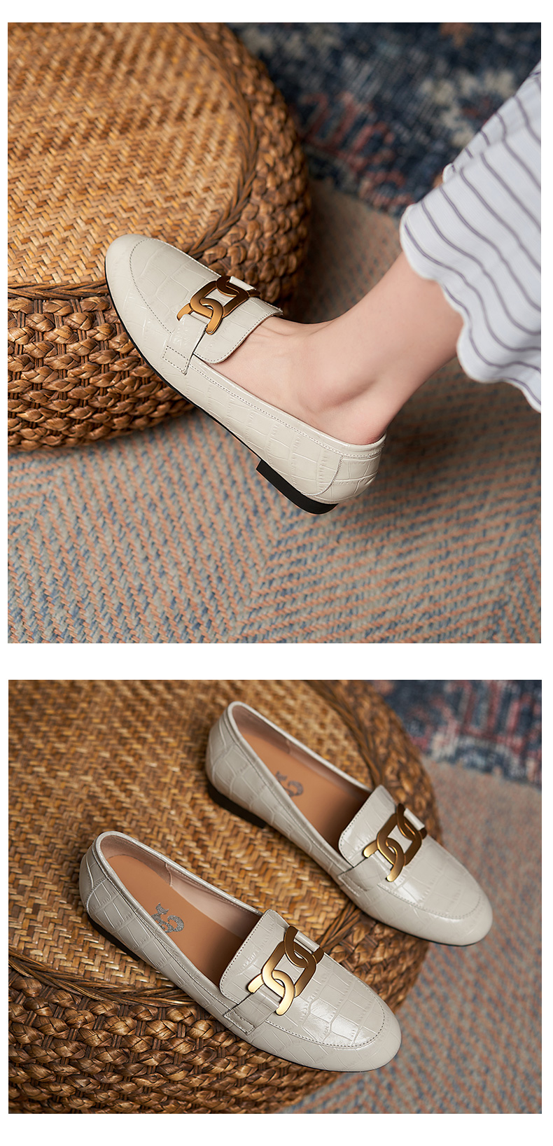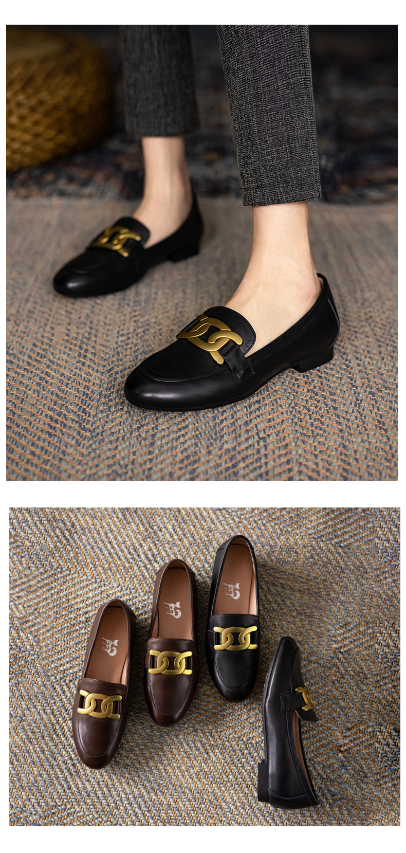 乐福鞋女真皮2021爆款鞋子春英伦风圆头单鞋一脚蹬黑色平底小皮鞋