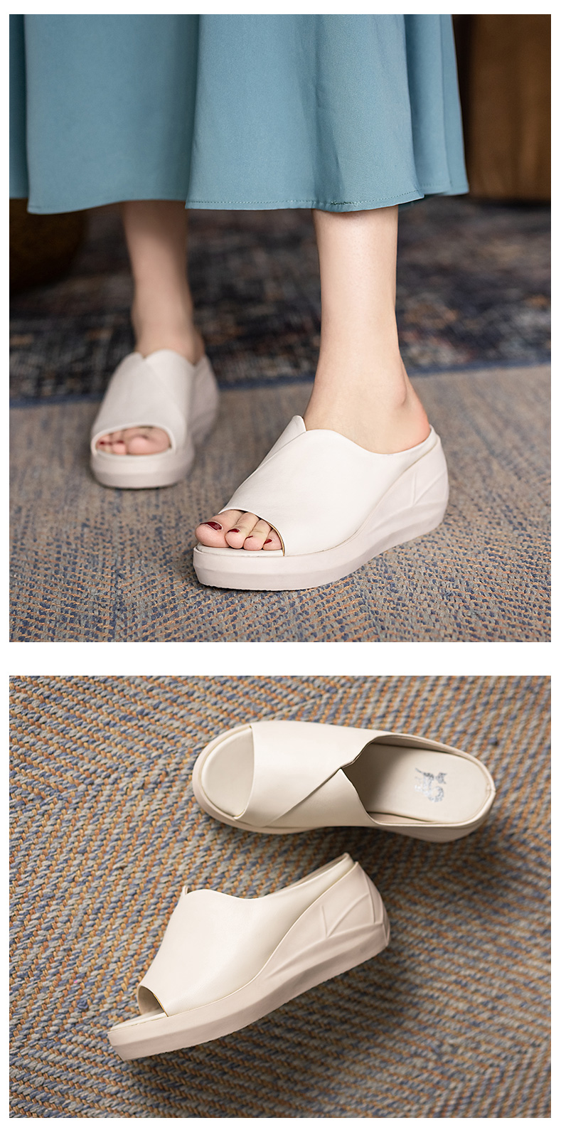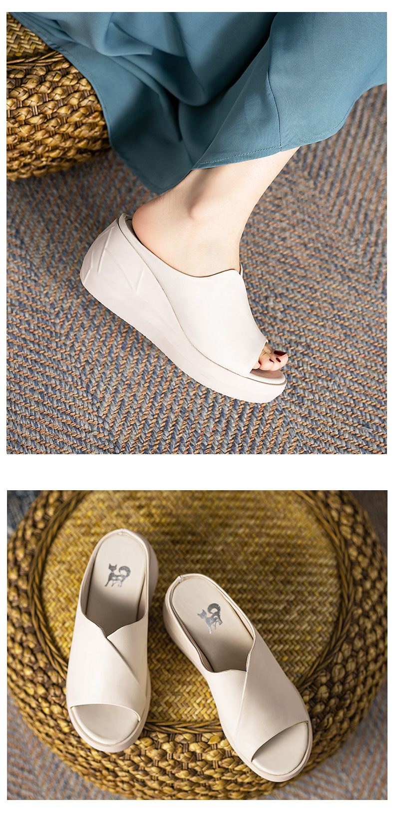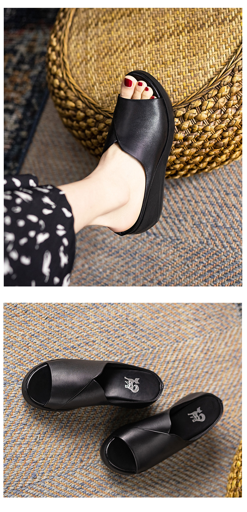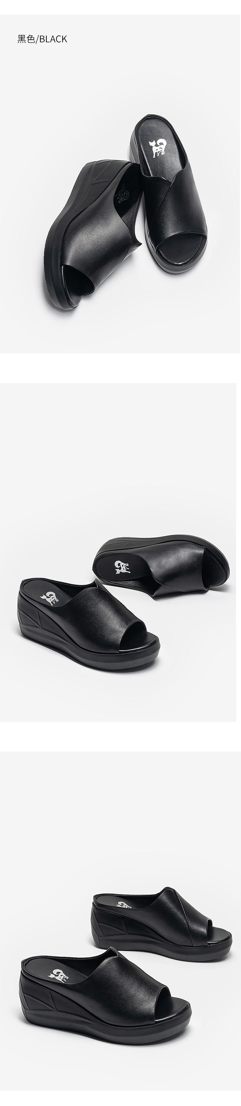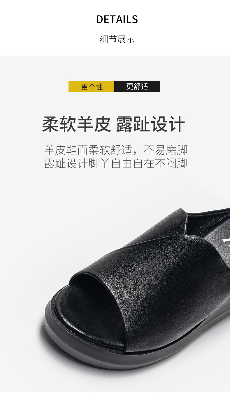 浪莎坡跟凉拖女外穿2021春新款夏天时尚高跟真皮懒人厚底鱼嘴拖鞋
