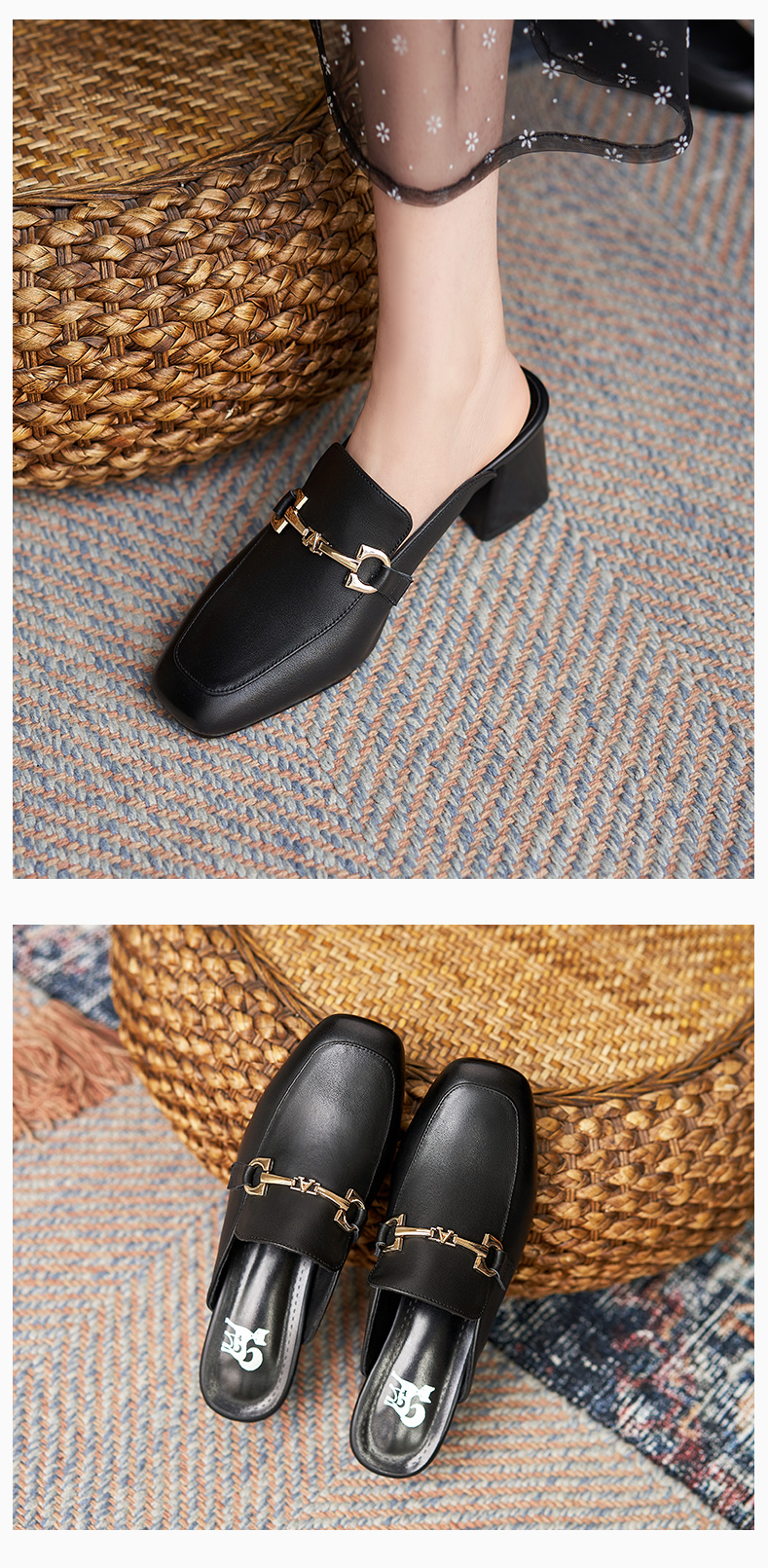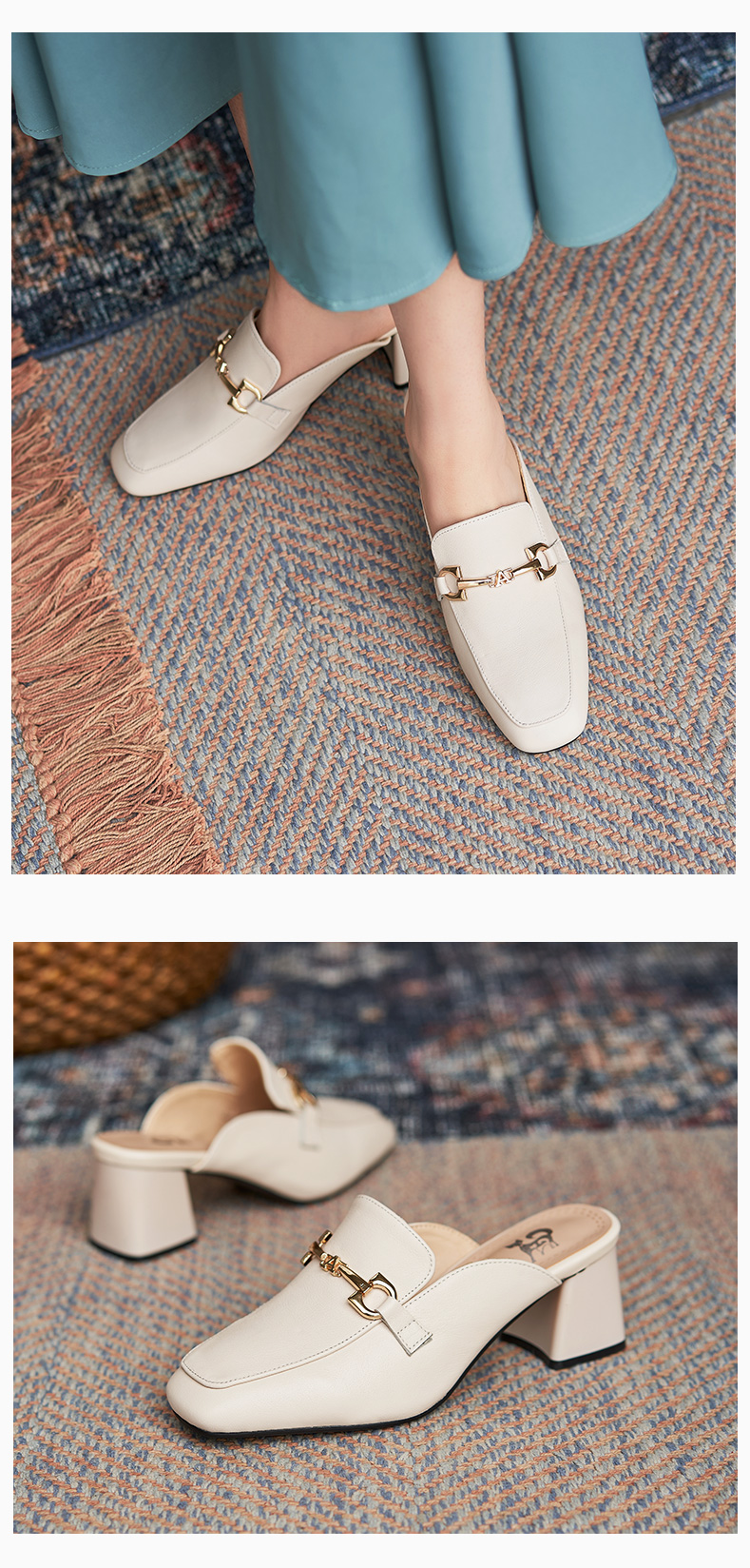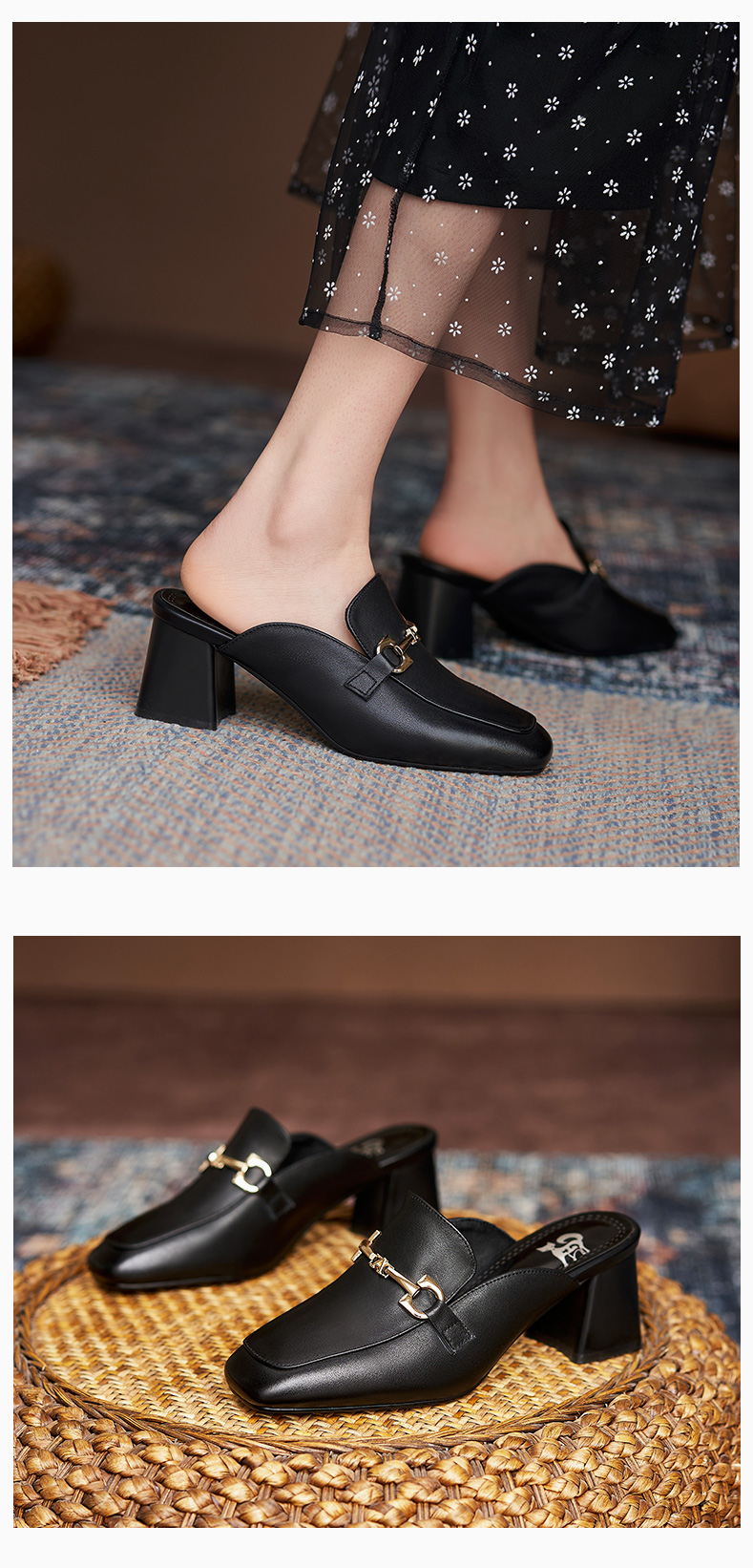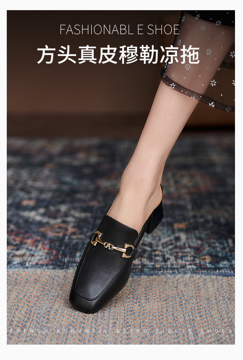 包头半拖鞋女2021年一脚蹬女鞋夏时尚穆勒鞋真皮高跟方头外穿凉拖