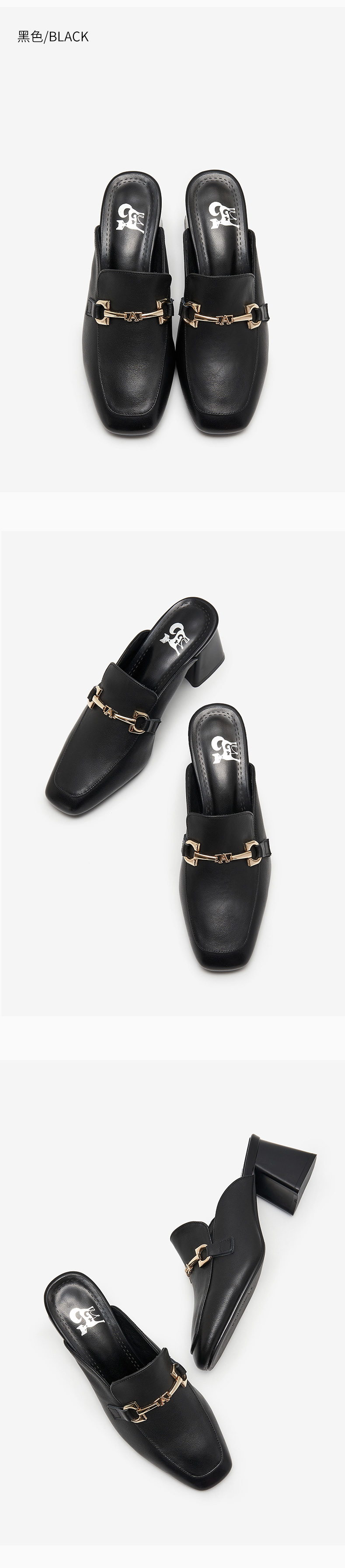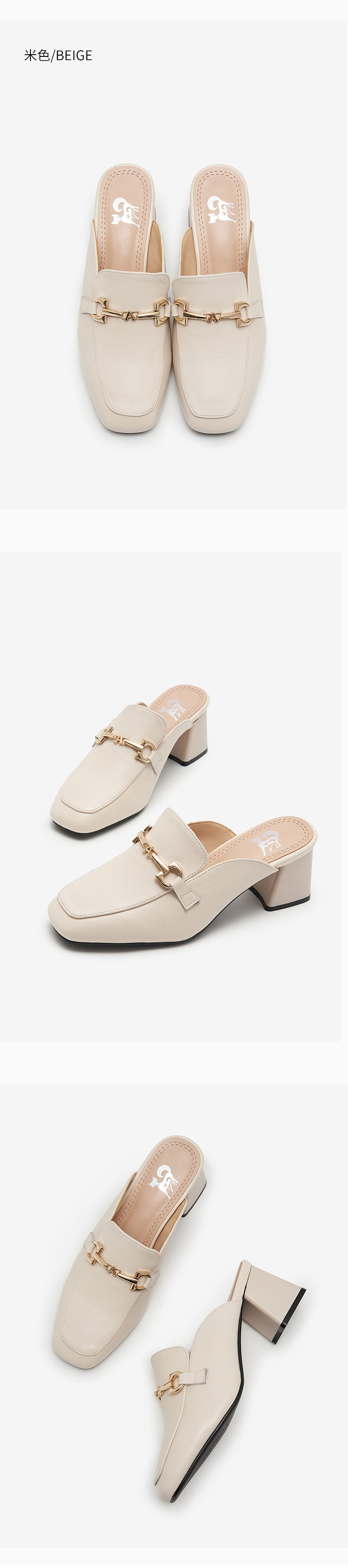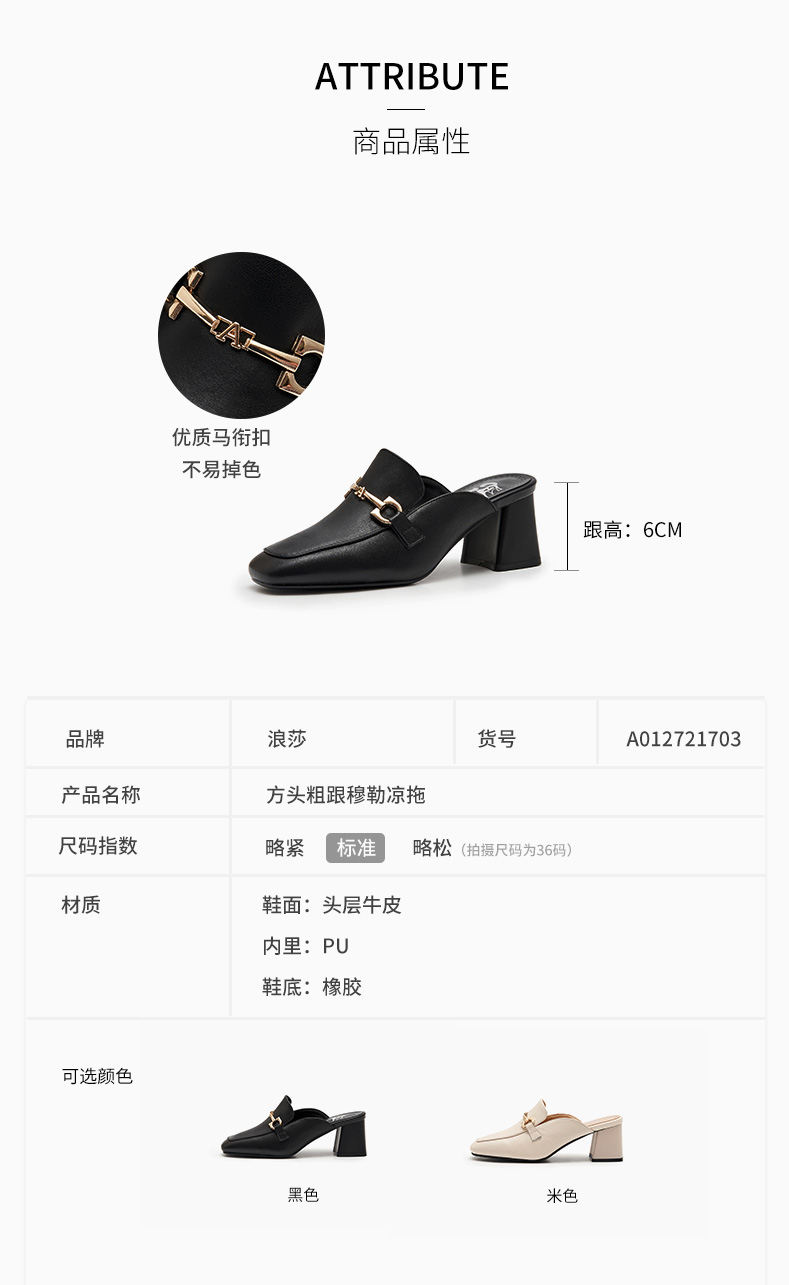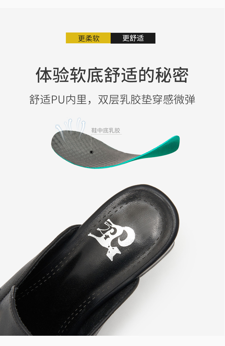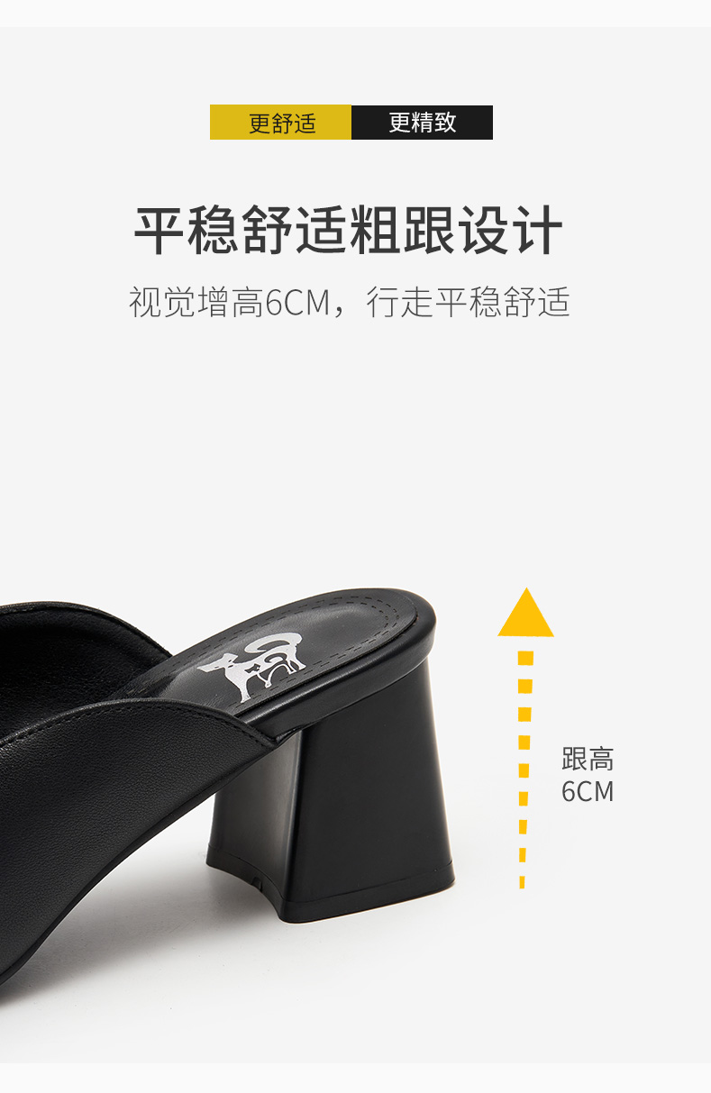 包头半拖鞋女2021年一脚蹬女鞋夏时尚穆勒鞋真皮高跟方头外穿凉拖