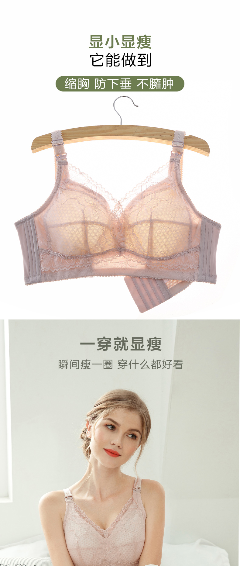 哺乳内衣夏季薄款超聚拢防下垂喂奶孕妇内衣怀孕期纯棉bra胸罩女