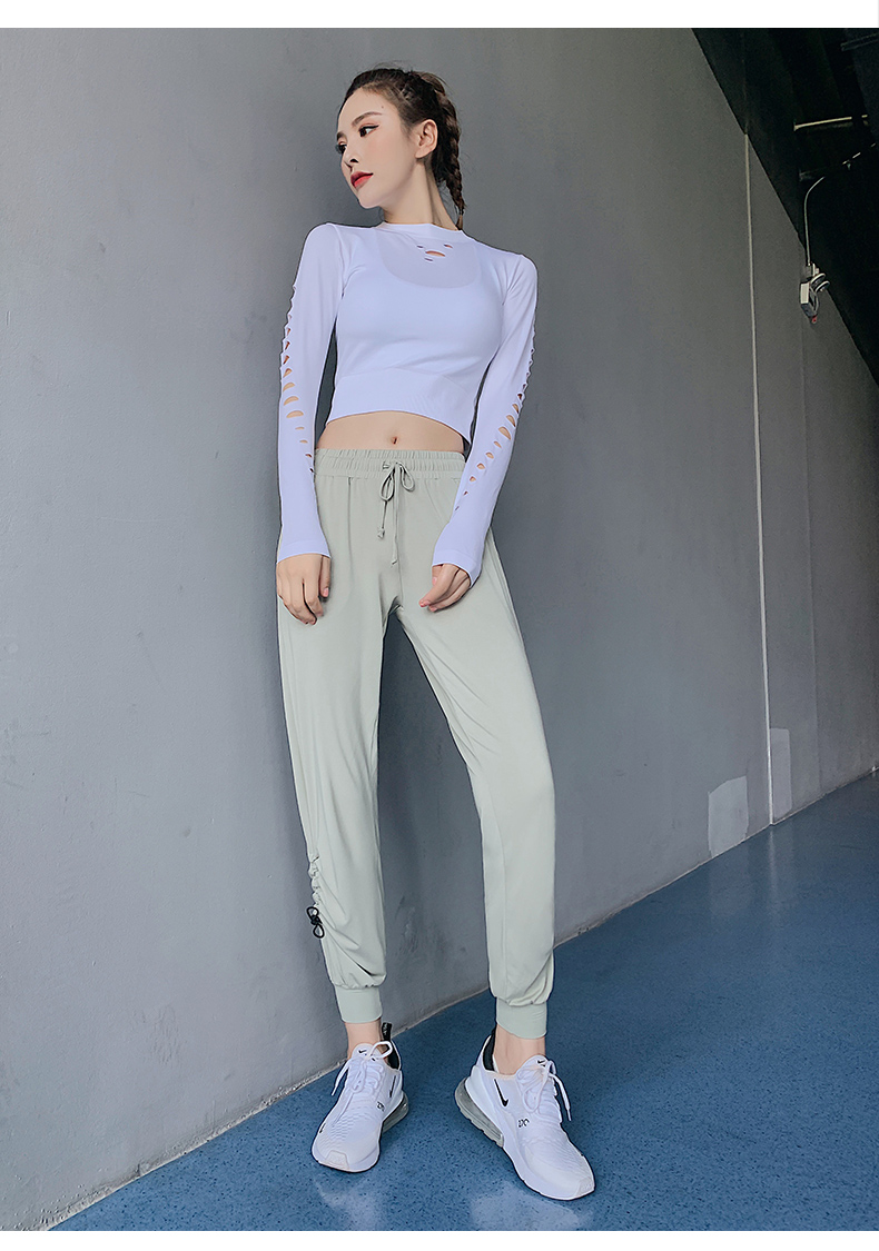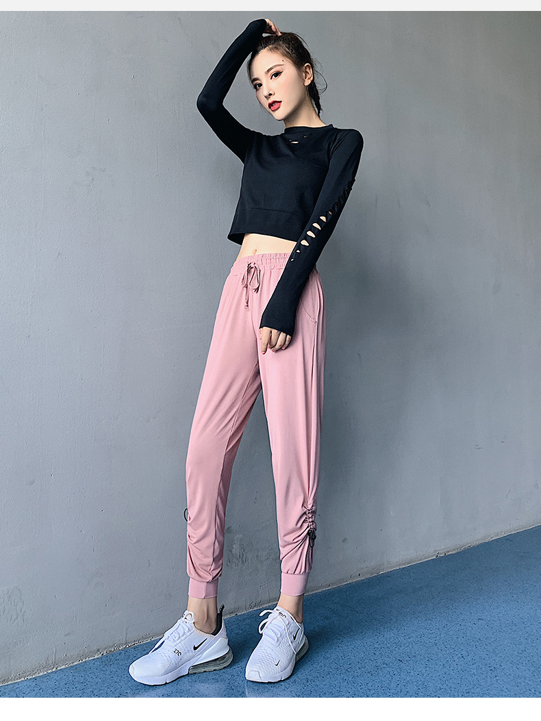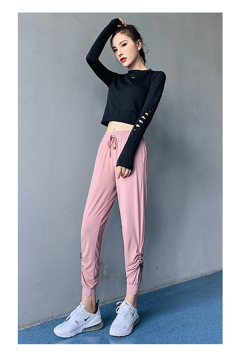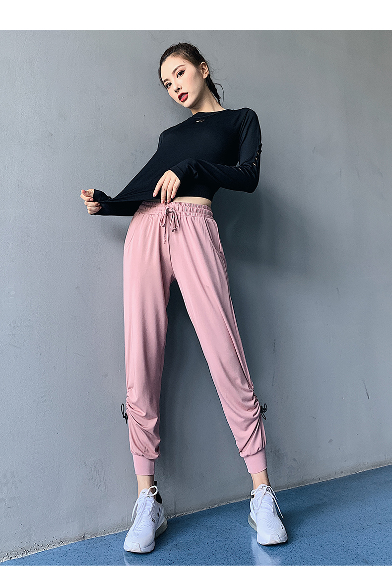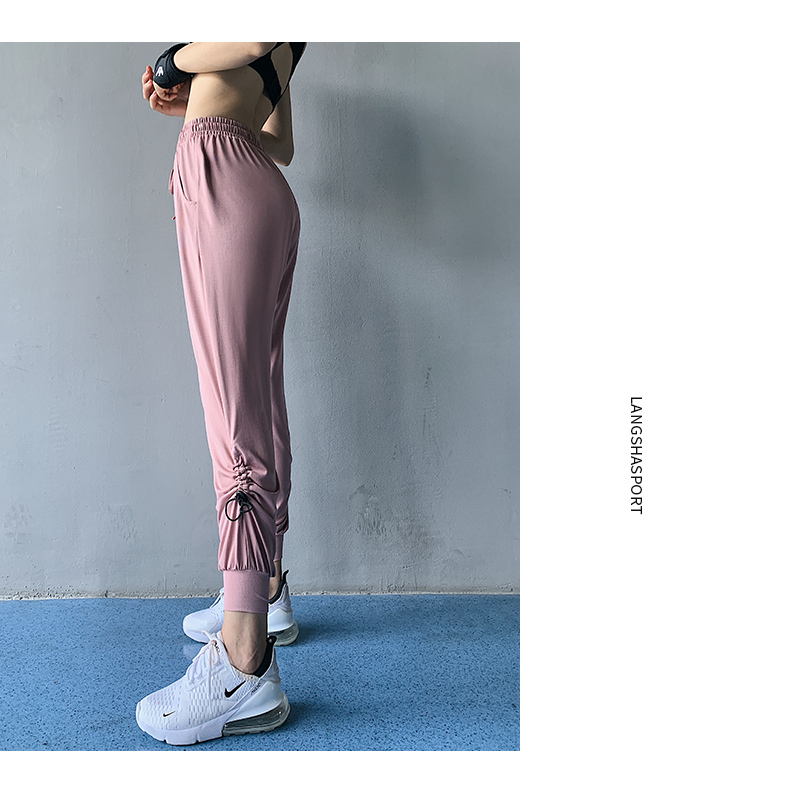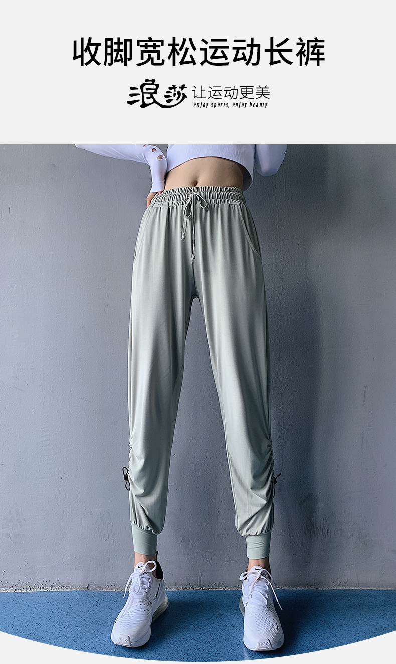 特价浪莎健身裤女宽松束脚收口跑步舞蹈薄款速干高腰瑜伽裤运动裤