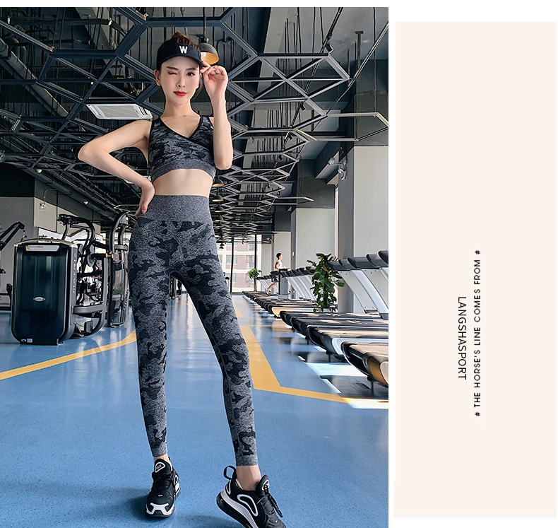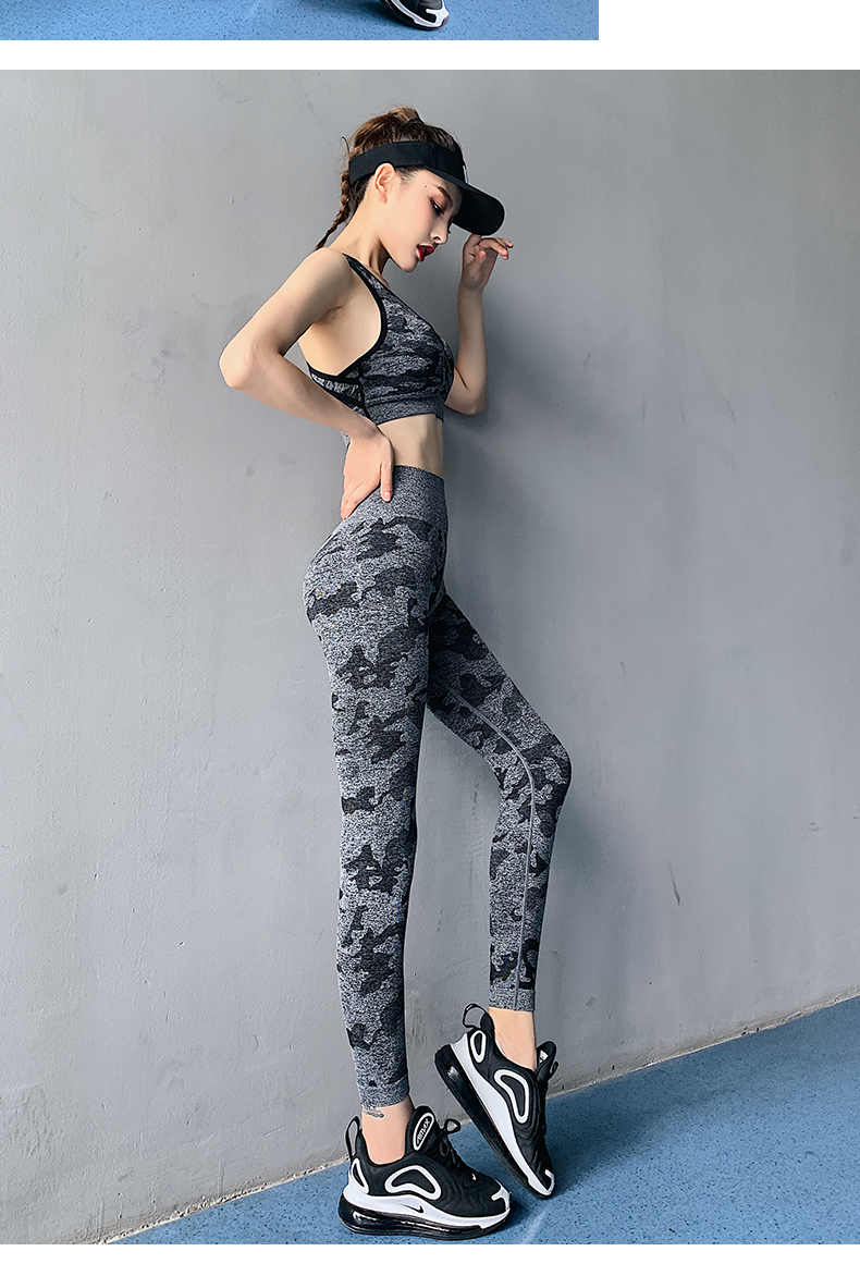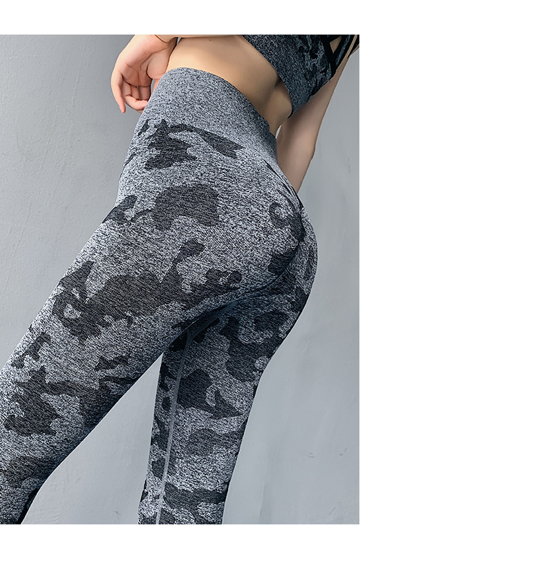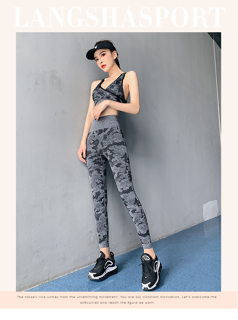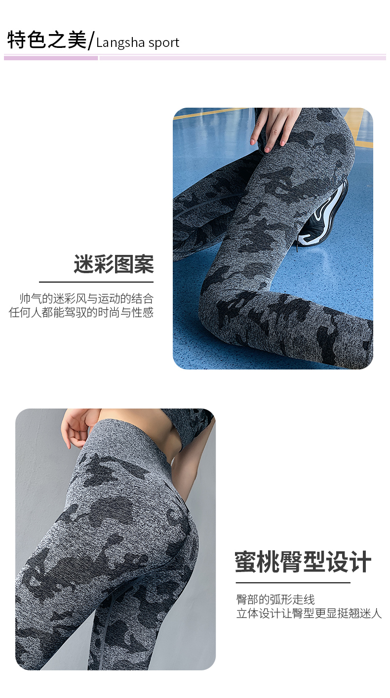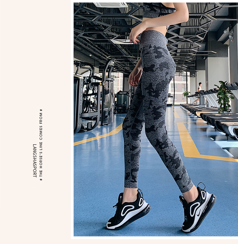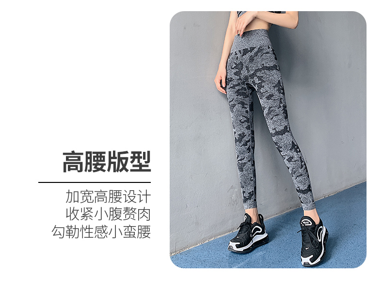 浪莎高腰健身裤女弹力紧身套装提臀迷彩速干跑步运动收腹瑜伽裤
