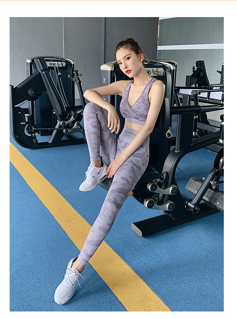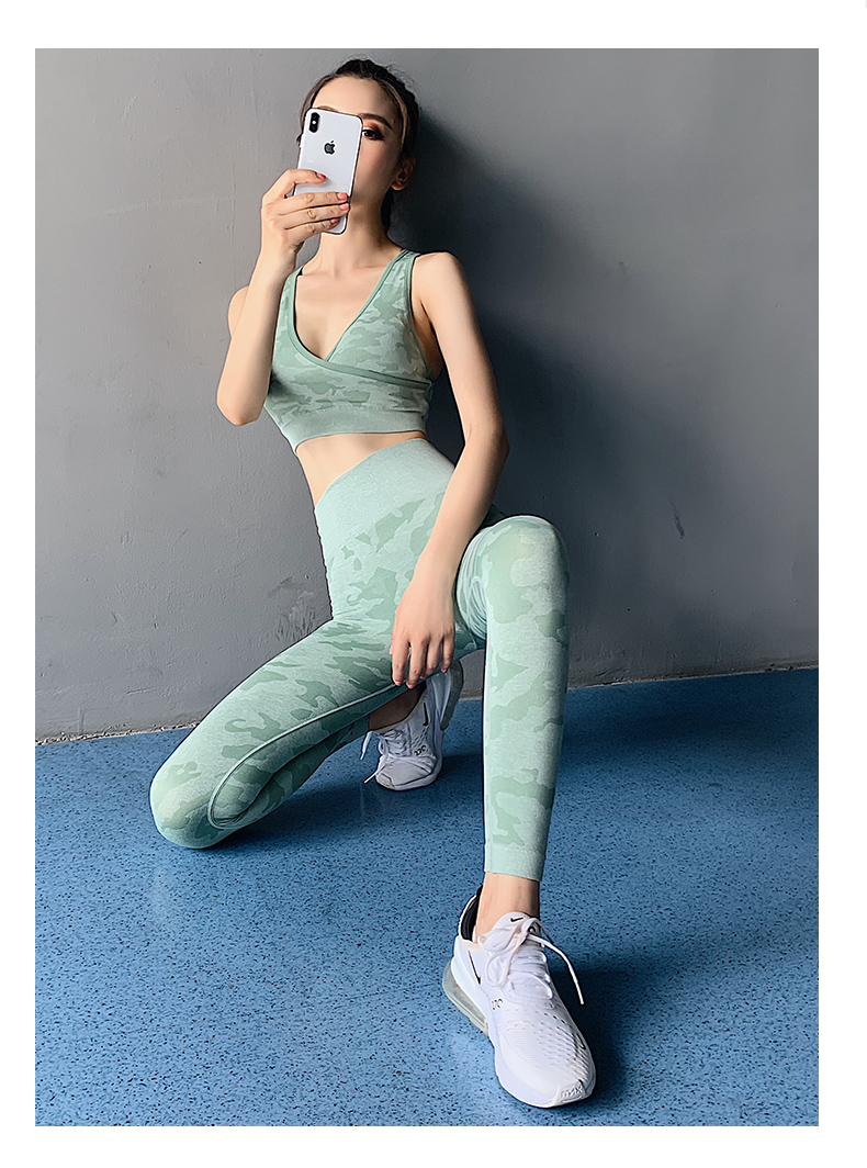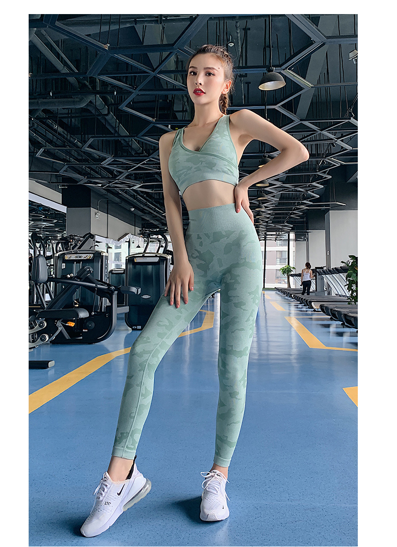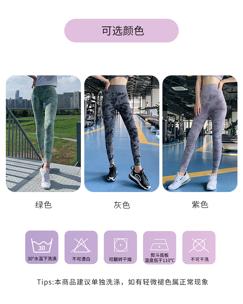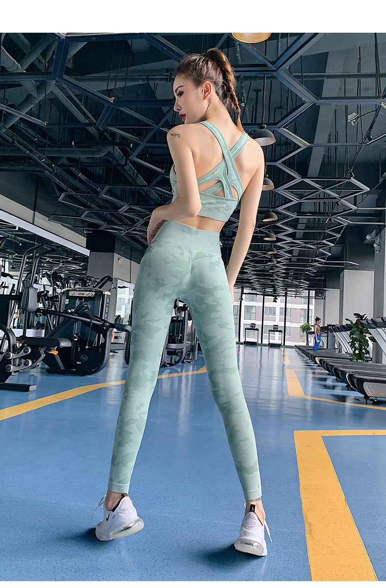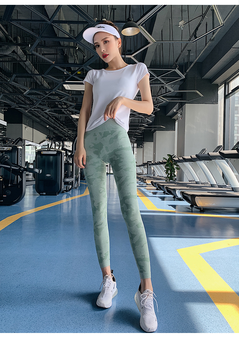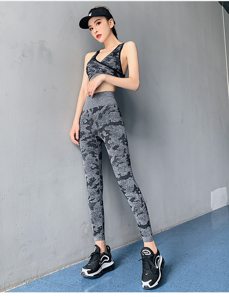 浪莎高腰健身裤女弹力紧身套装提臀迷彩速干跑步运动收腹瑜伽裤