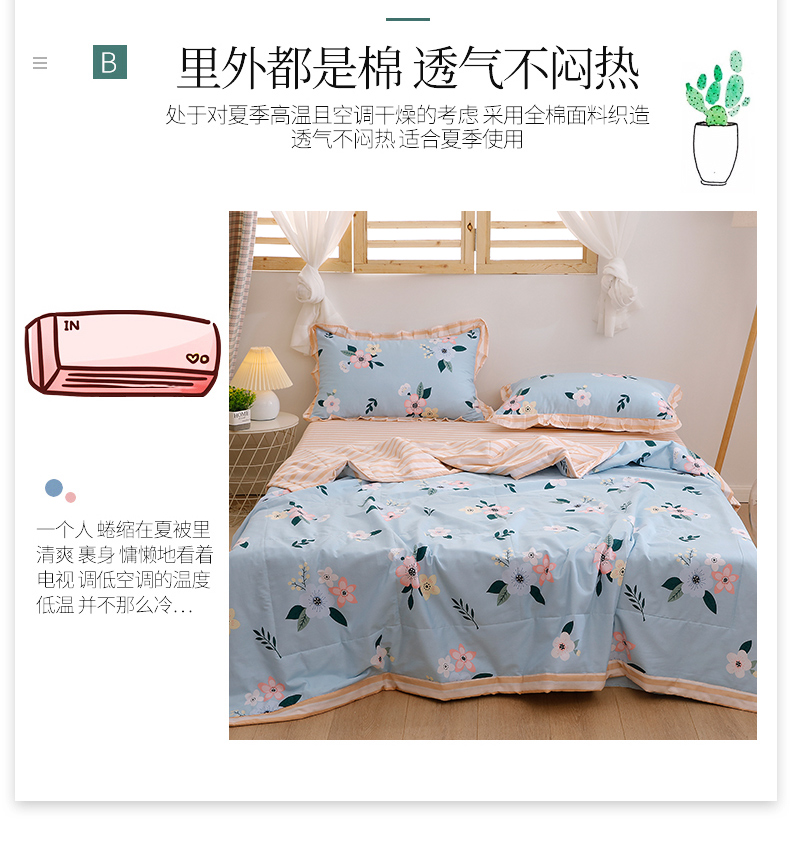 100%新疆棉花里外全棉空调被纯棉夏凉被单人双人夏被可水洗薄被子