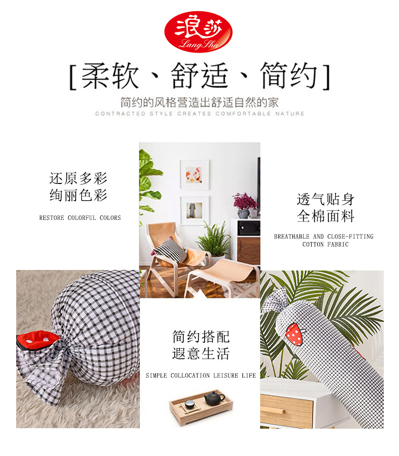 浪莎夏天纯棉糖果圆柱枕头夏季睡觉侧睡夹腿抱枕长条枕女生可拆洗