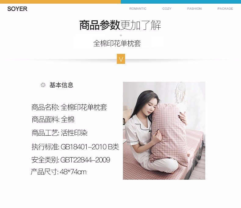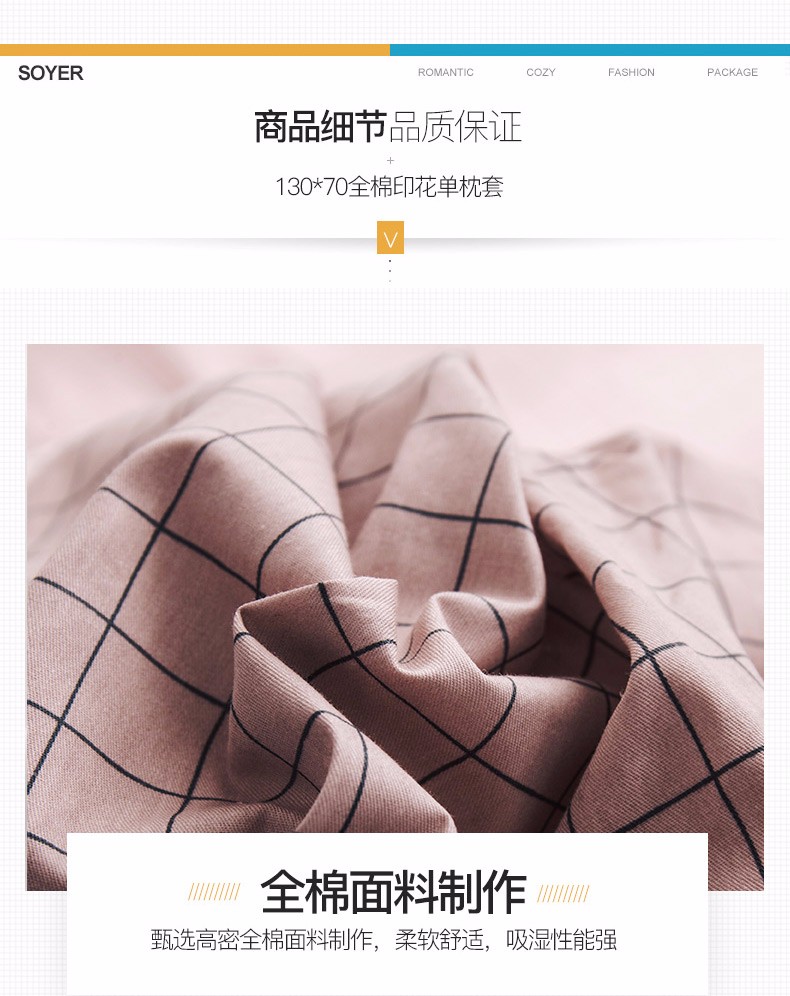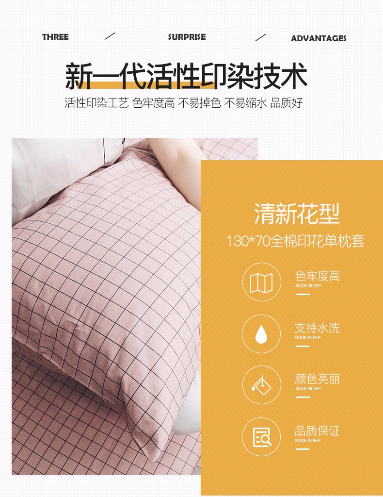浪莎全棉枕套一对装纯棉印花枕头套单人学生宿舍枕芯套48x74cm