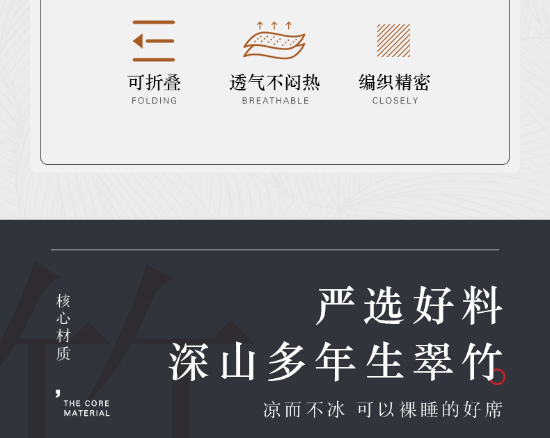 夏季碳化竹席可折叠席子单双人宿舍1.5米1.8m床空调凉席双面可用