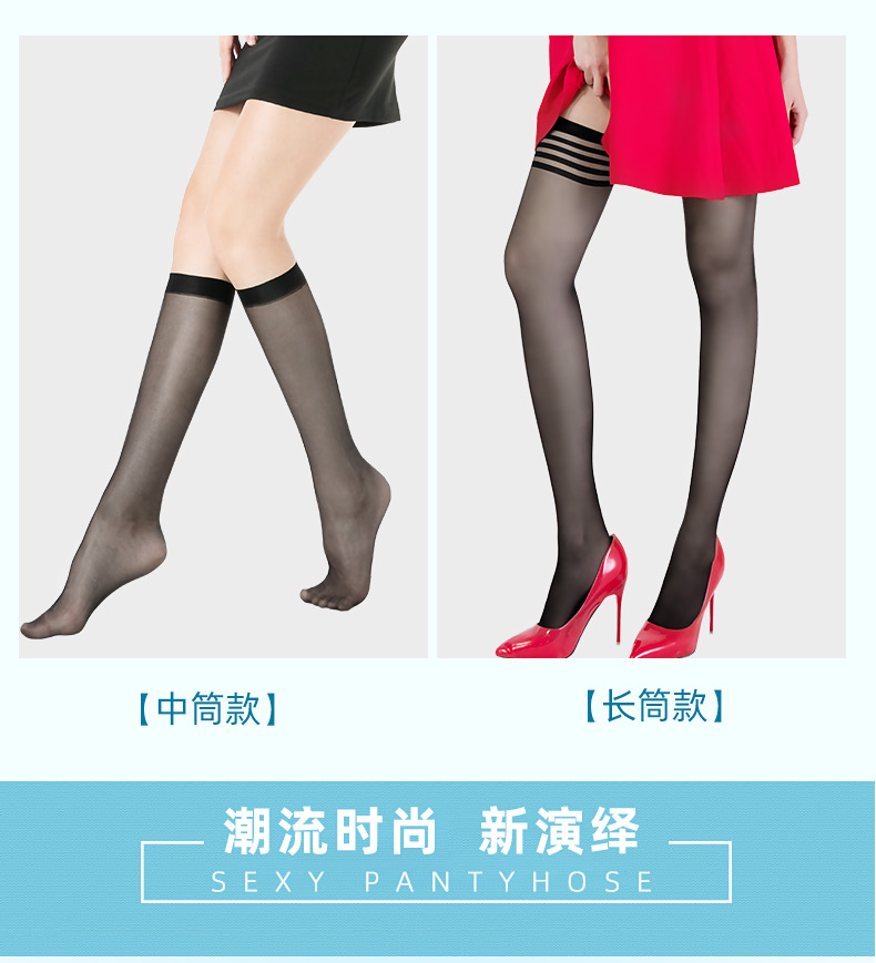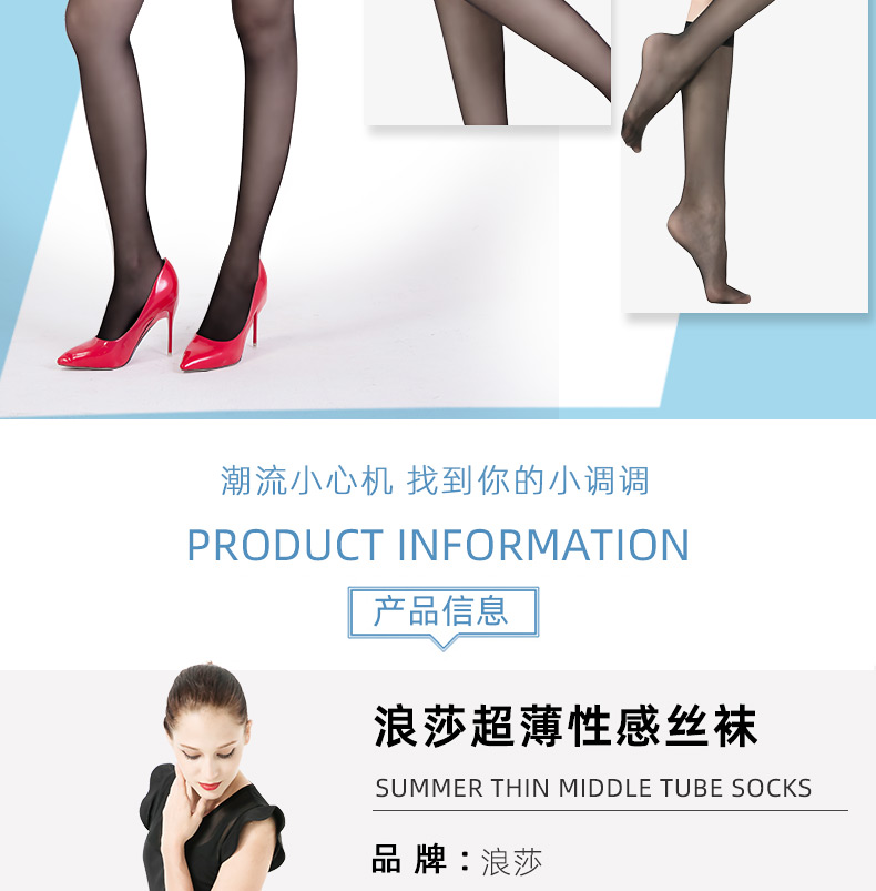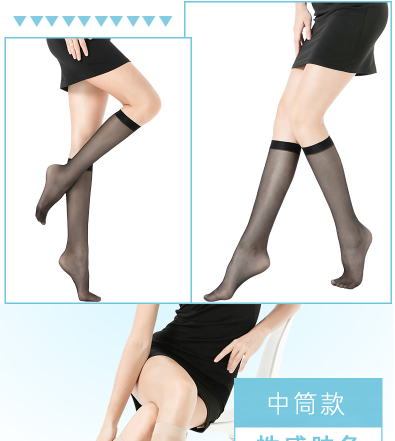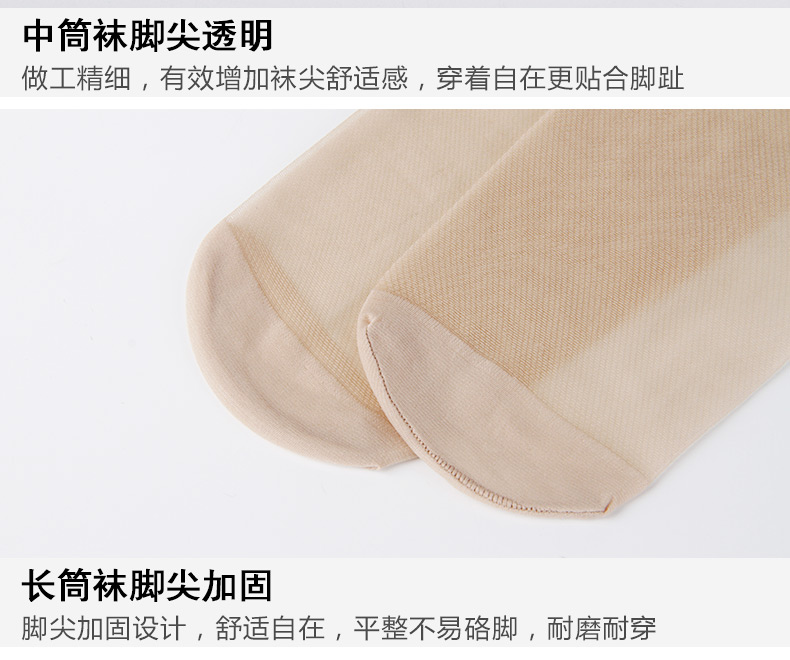 浪莎丝袜女 夏天脚尖透明中筒袜 防勾丝过膝长筒袜薄款小腿袜