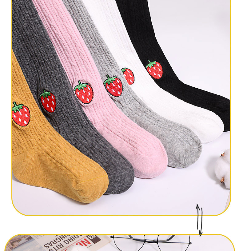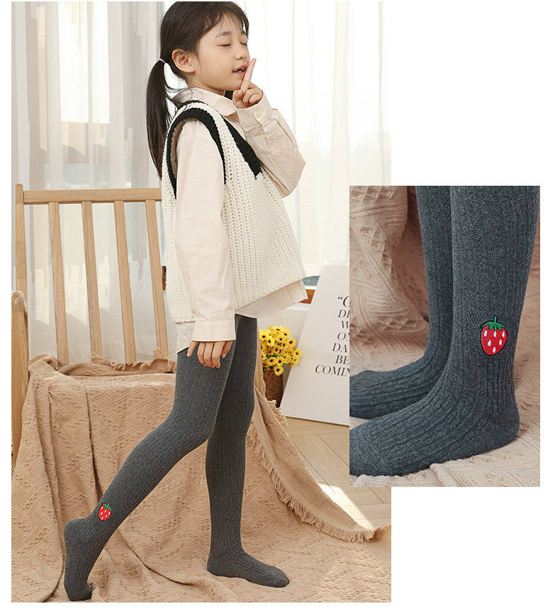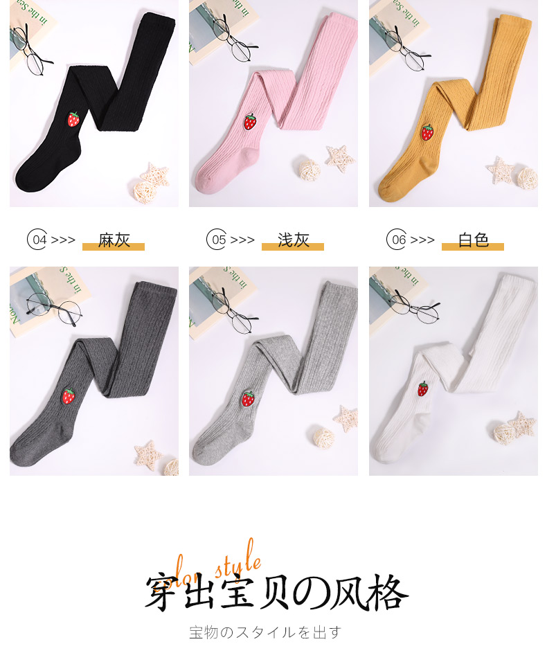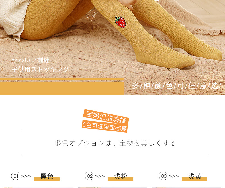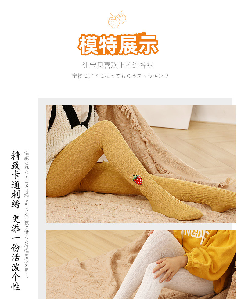 浪莎儿童连裤袜秋冬季女童刺绣草莓打底袜宝宝糖果色麻花条纹袜子