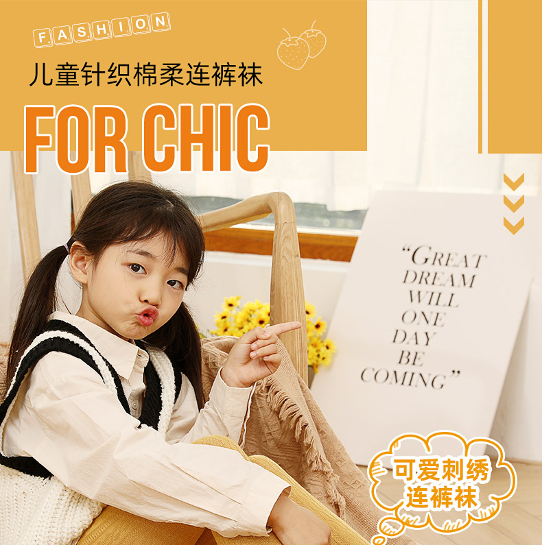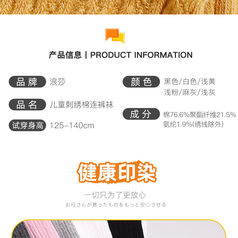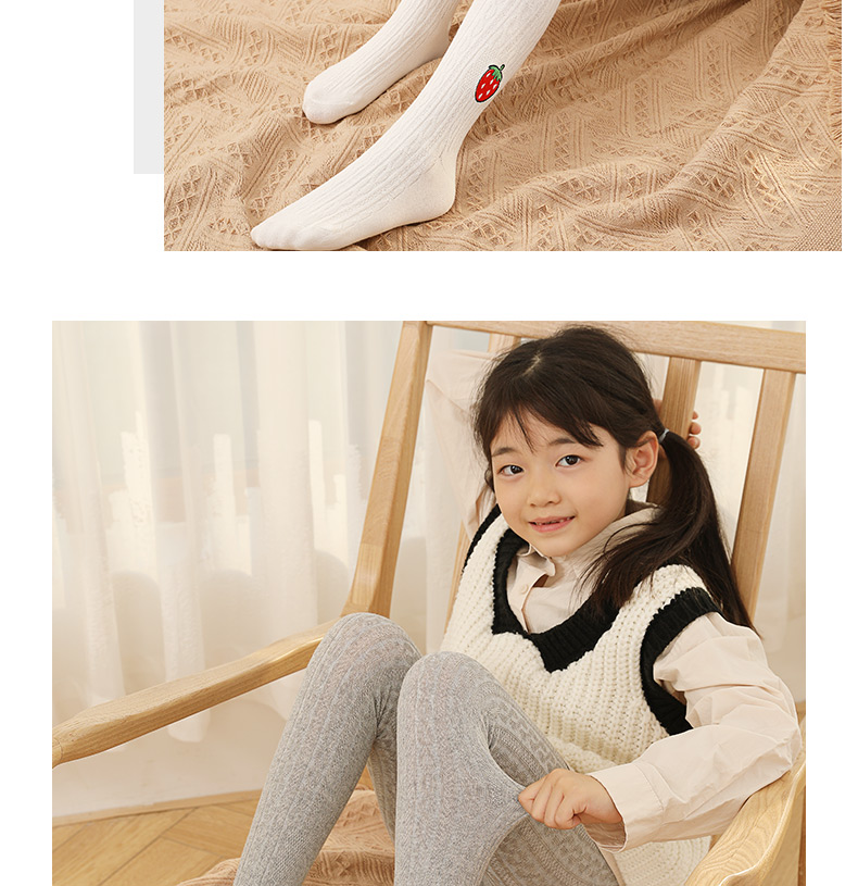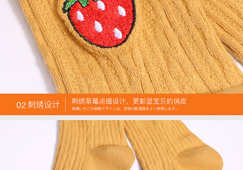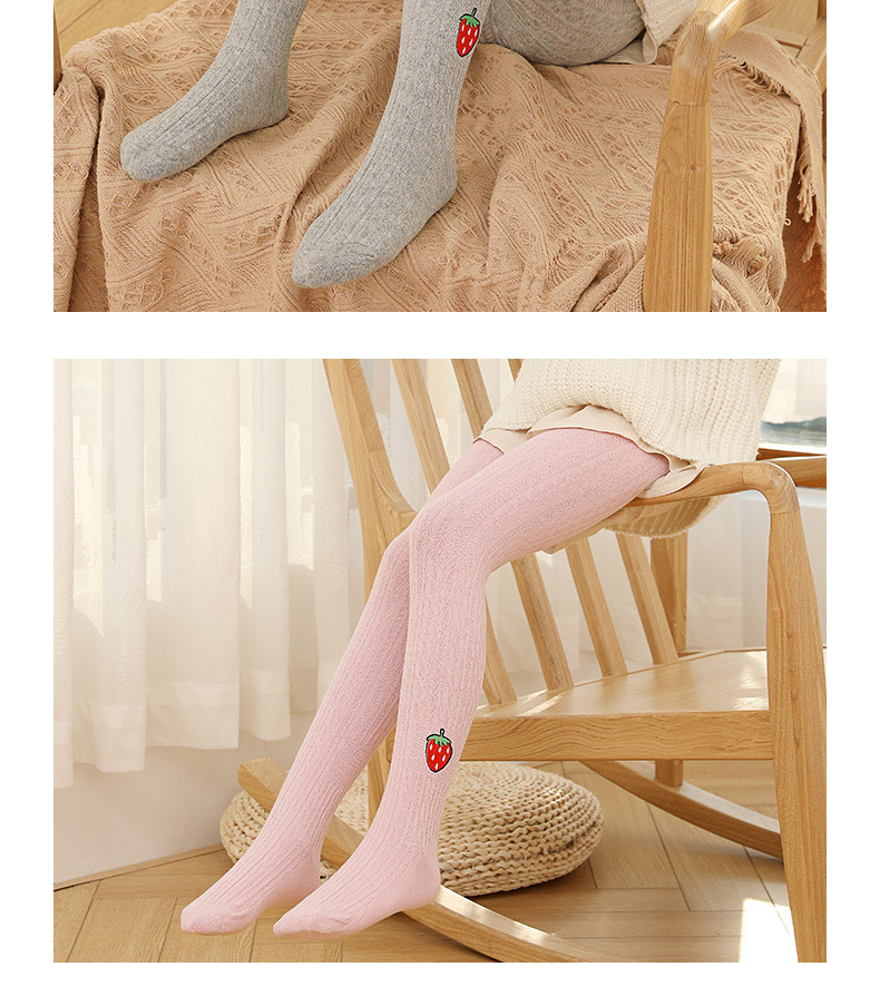 浪莎儿童连裤袜秋冬季女童刺绣草莓打底袜宝宝糖果色麻花条纹袜子