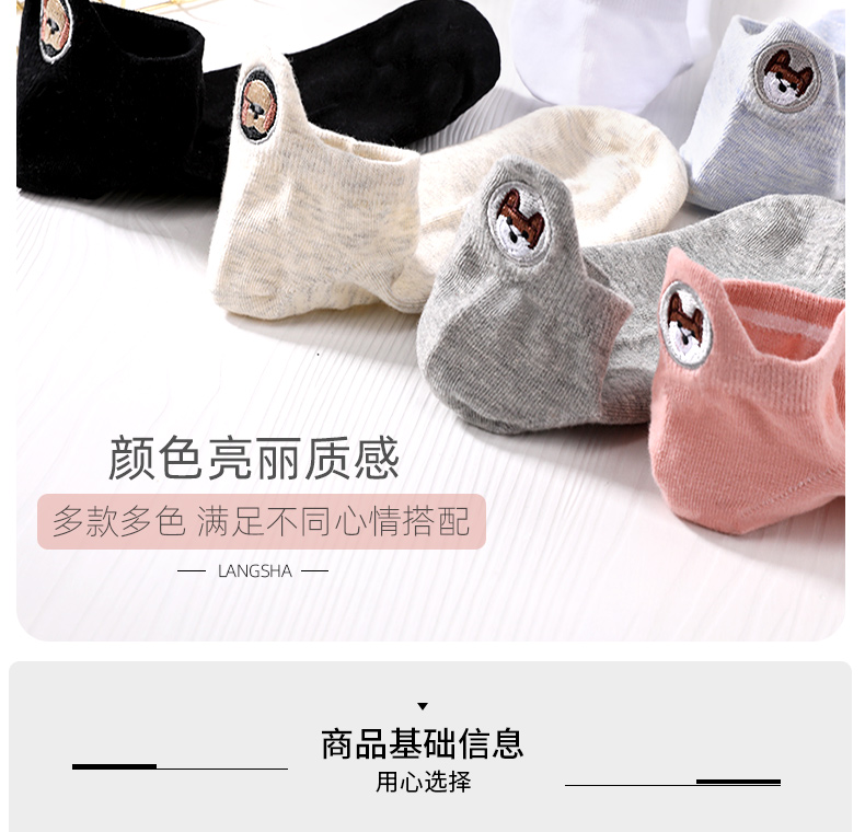浪莎袜子女士浅口船袜春夏季薄款隐形短袜夏天可爱刺绣ins潮棉袜