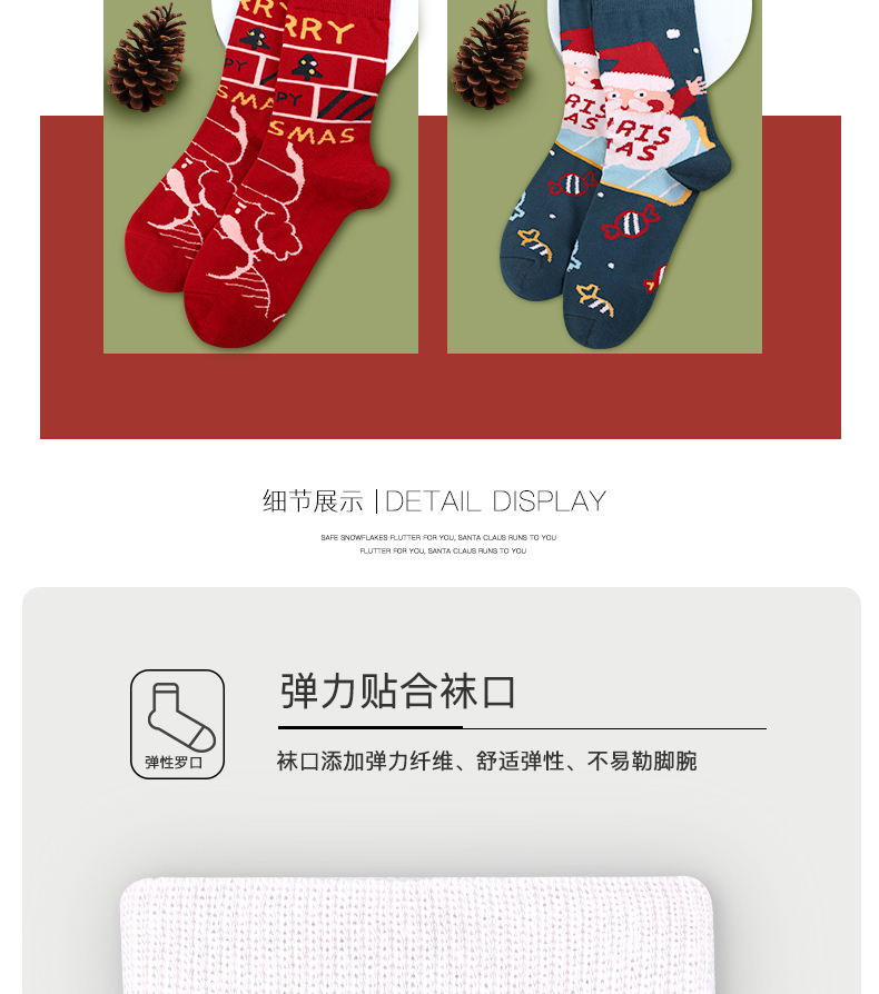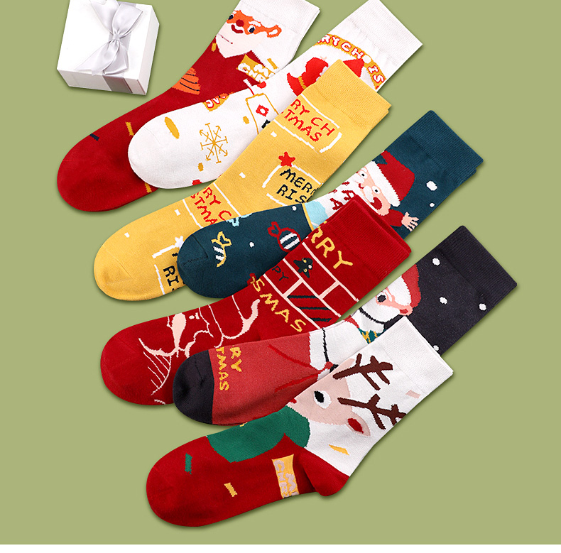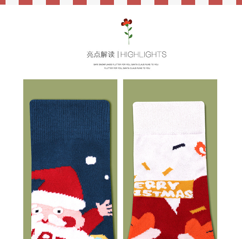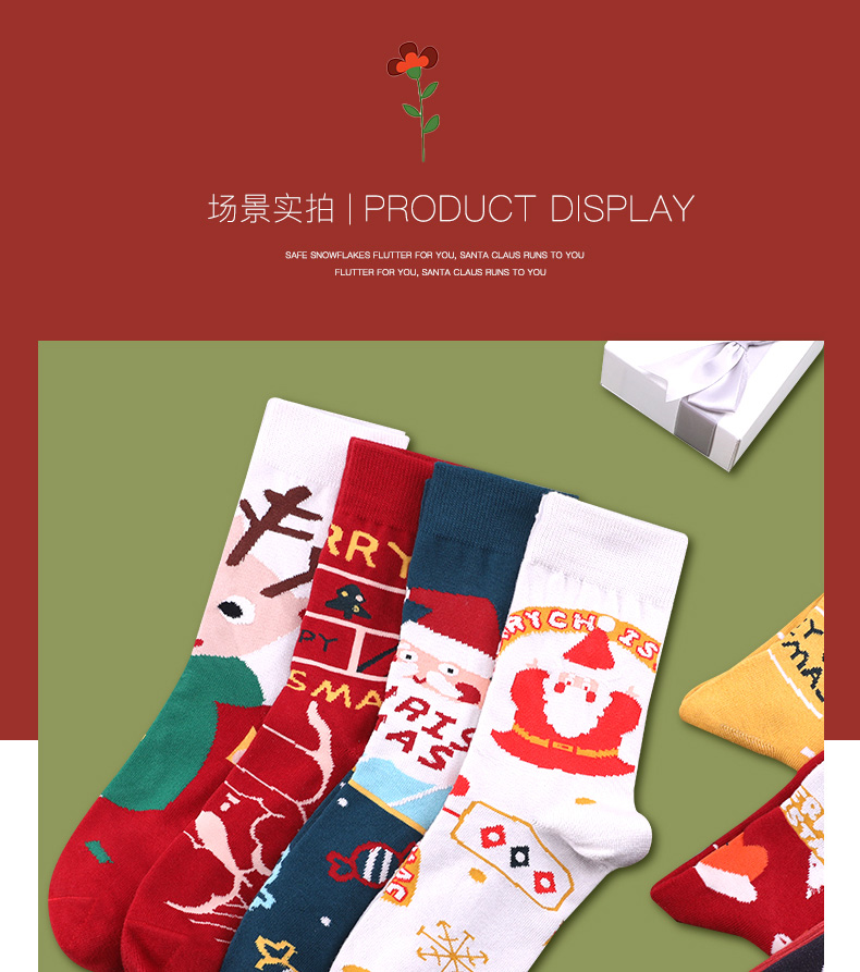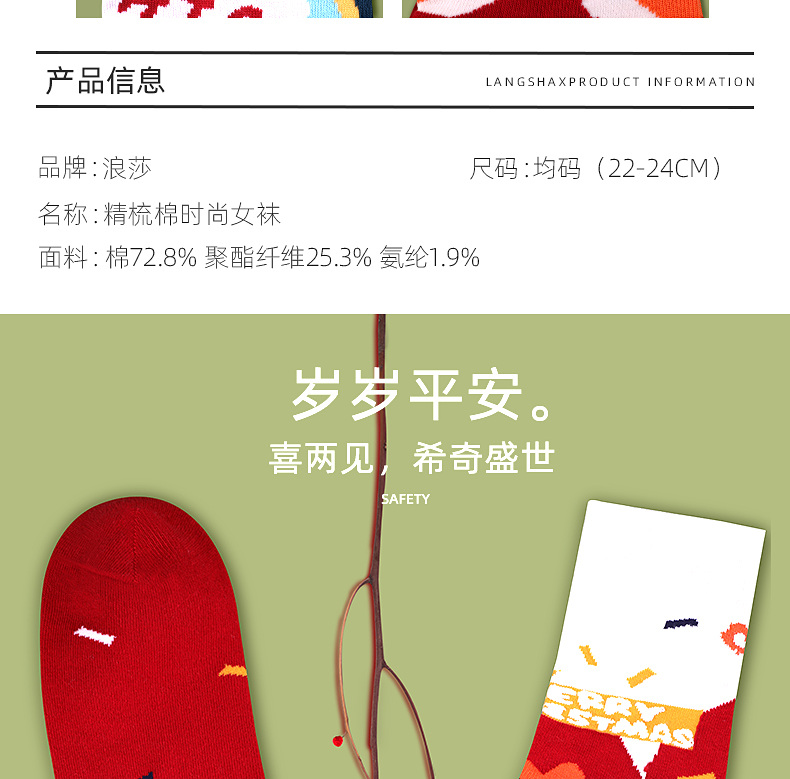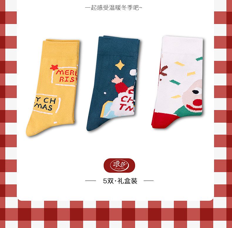 浪莎圣诞袜子女中筒袜秋冬季可爱本命年红袜子圣诞节礼盒加厚棉袜