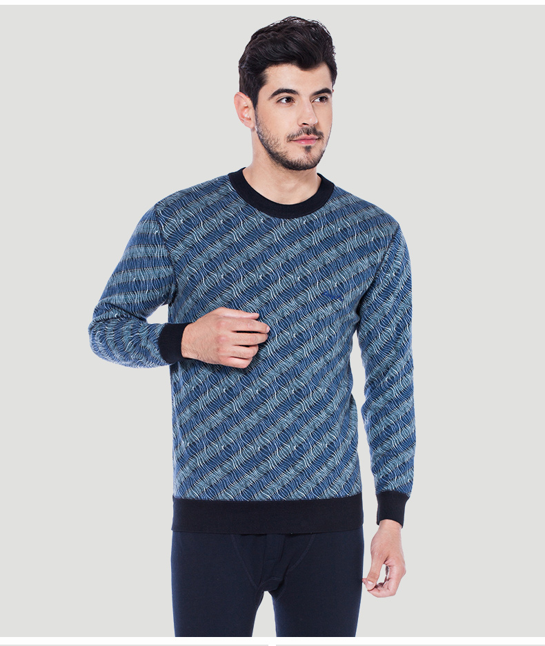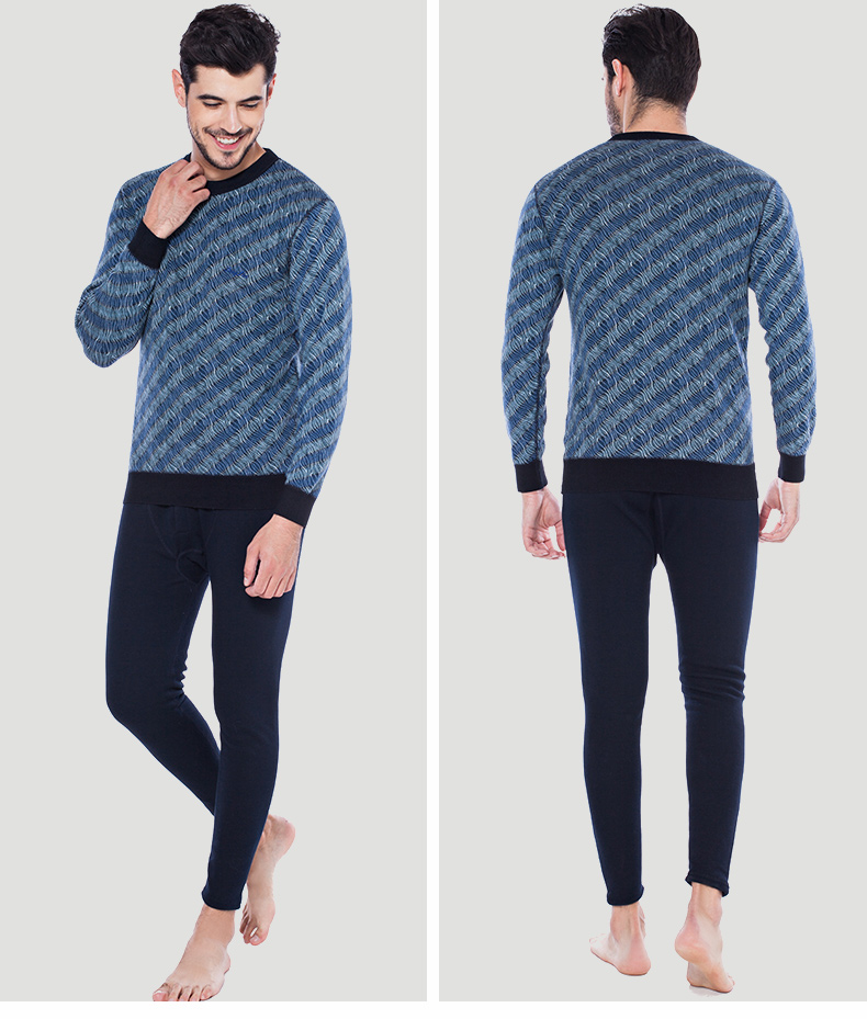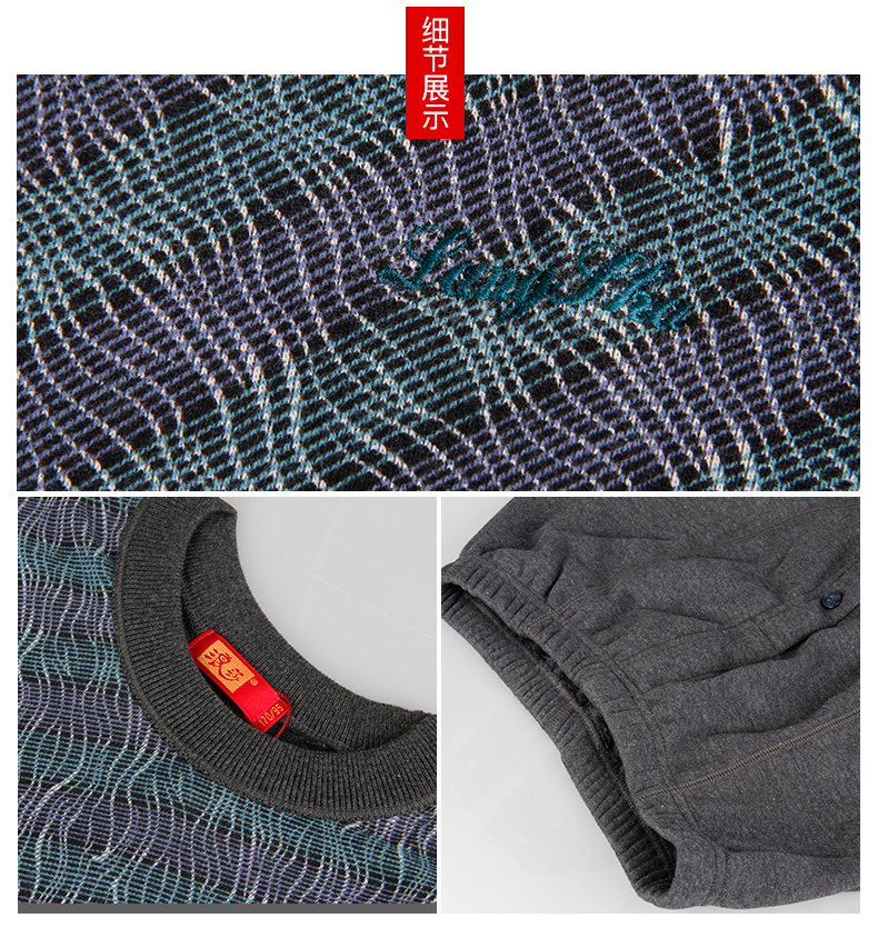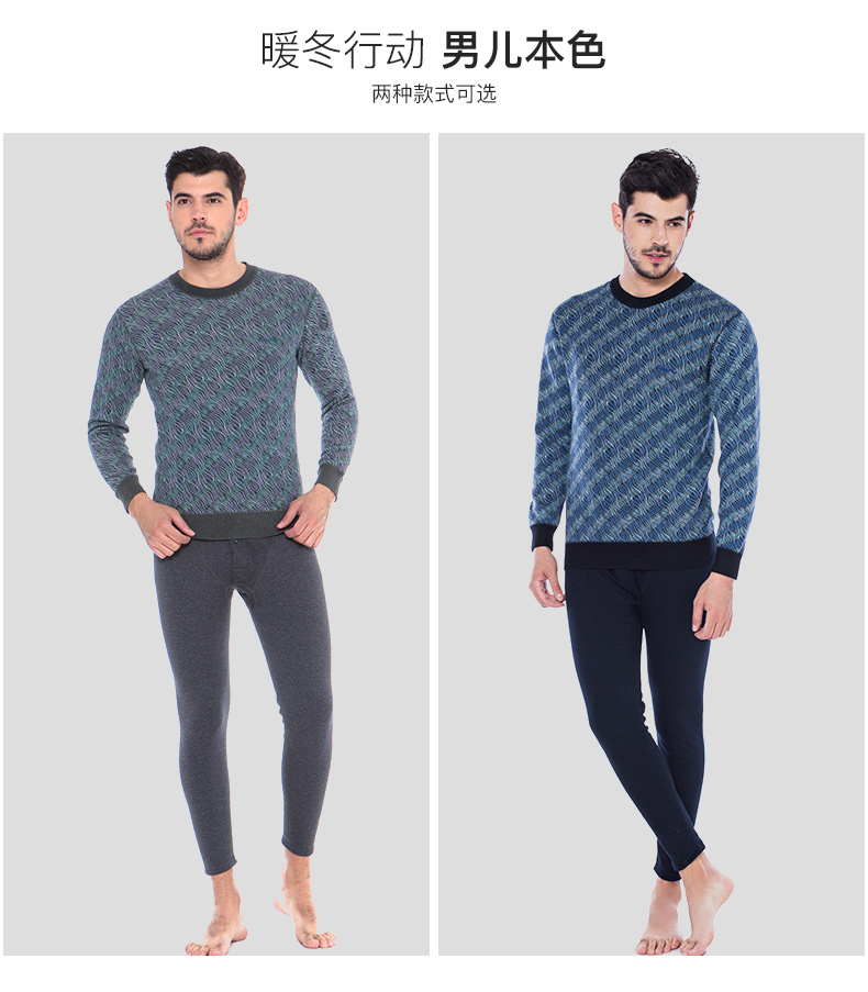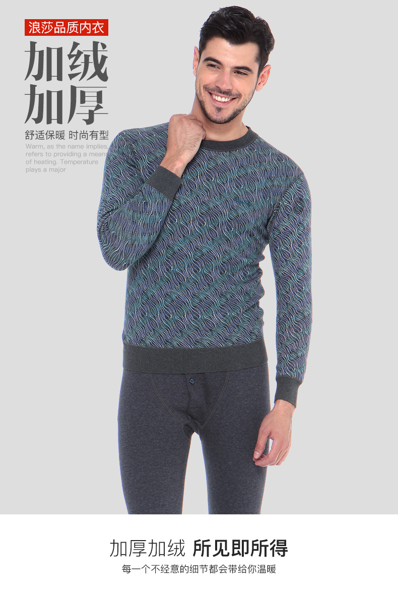 浪莎条纹个性保暖内衣男士加厚加绒中老年人爸爸冬季秋衣秋裤套装