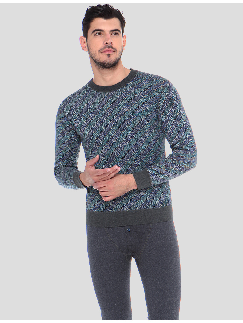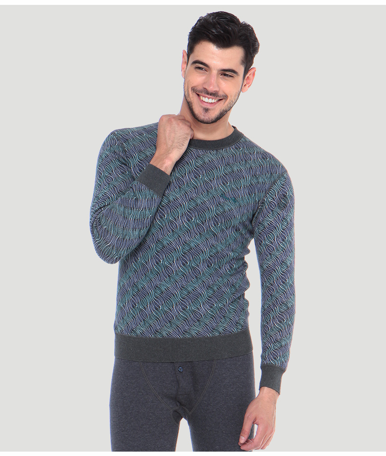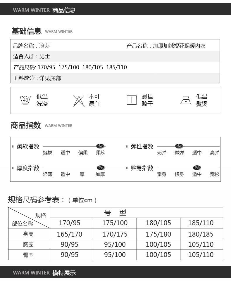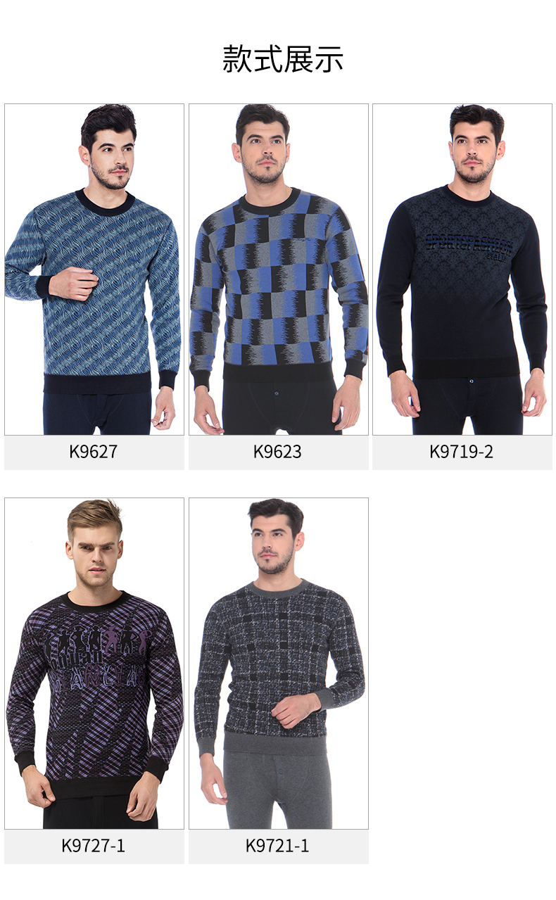 浪莎条纹个性保暖内衣男士加厚加绒中老年人爸爸冬季秋衣秋裤套装