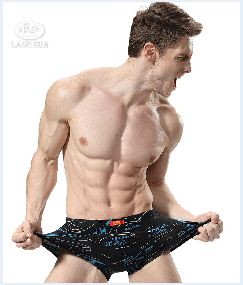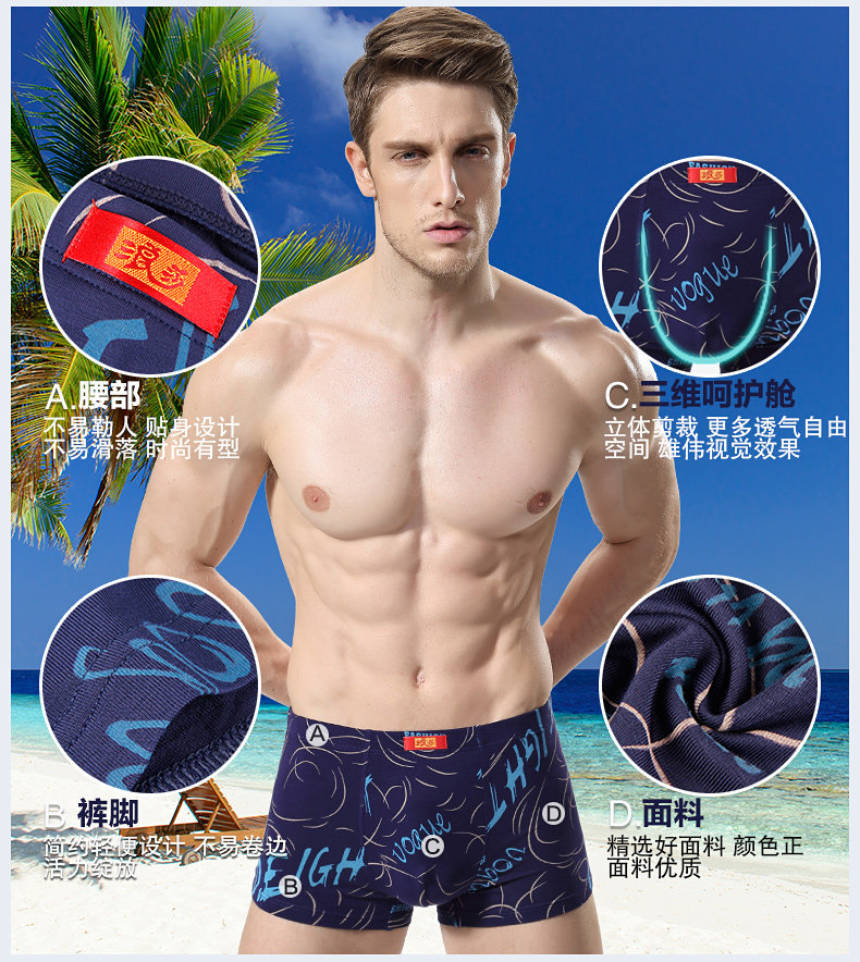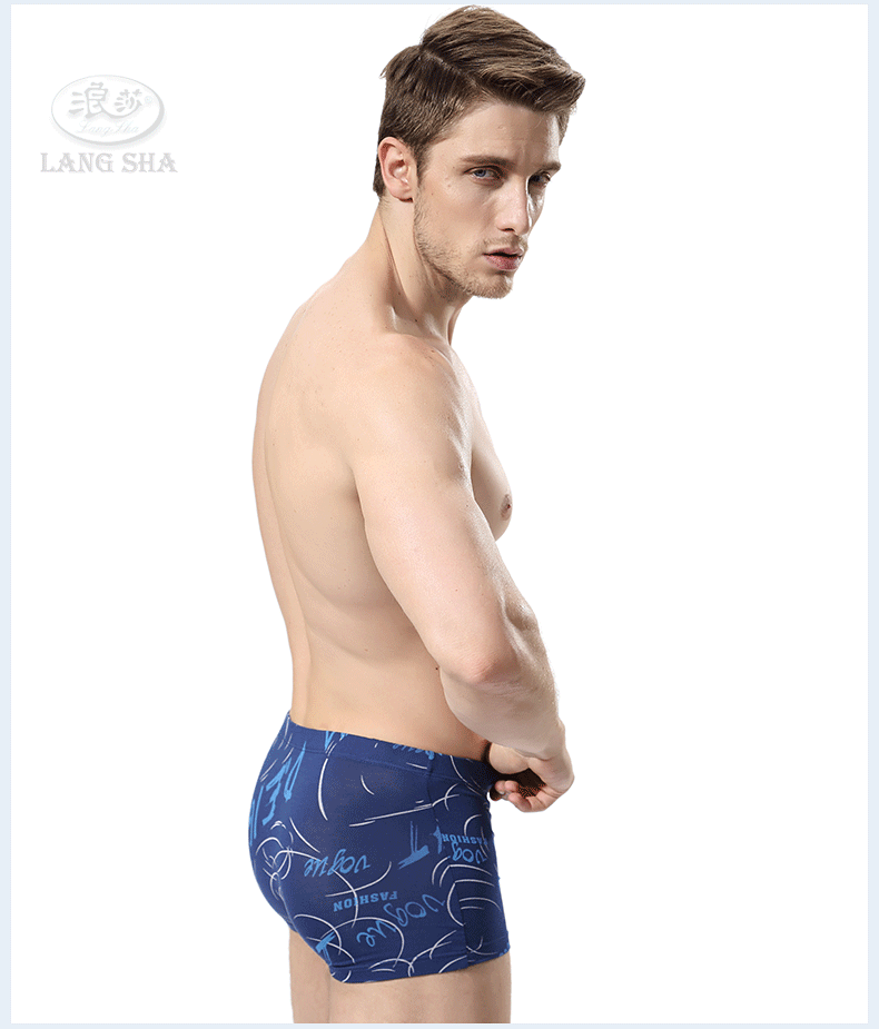 浪莎内裤 男士平角裤中腰青年春夏透气U凸印花四角短裤衩男