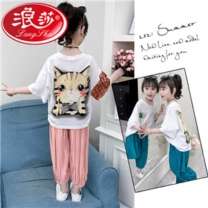 浪莎童装女童夏装中大童洋气t恤纯棉短袖套装儿童宽松冰丝防蚊裤